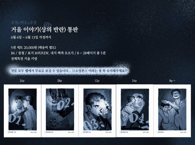 호백호 거울 이야기 소장본 입금 폼입니다.. ❗️06.06 ~ 06. 12 자정까지 .... ❗️웹 발행이 되어있는 상태입니다! 무료로 전부 열람가능!!!! ❗️ 선 주문 후 수량에 맞춰 제작할 예정이며.. 재판 예정은 없습니다.... 더 자세한 사항은... 폼에서 확인해주세요.. 쪽 ! witchform.com/deposit_form.p…