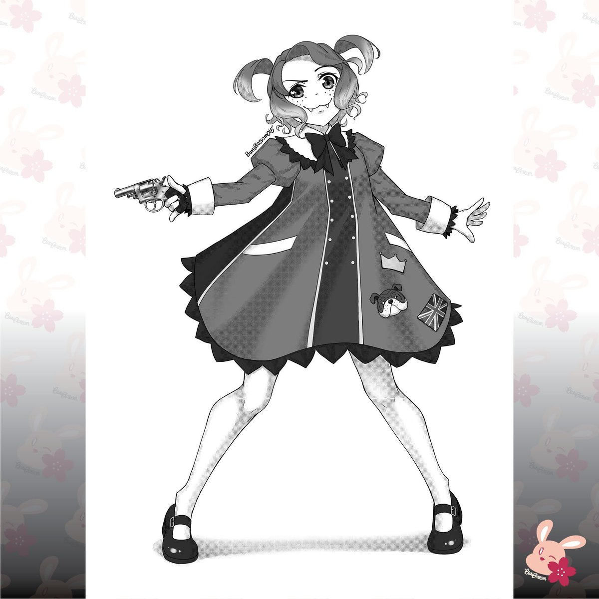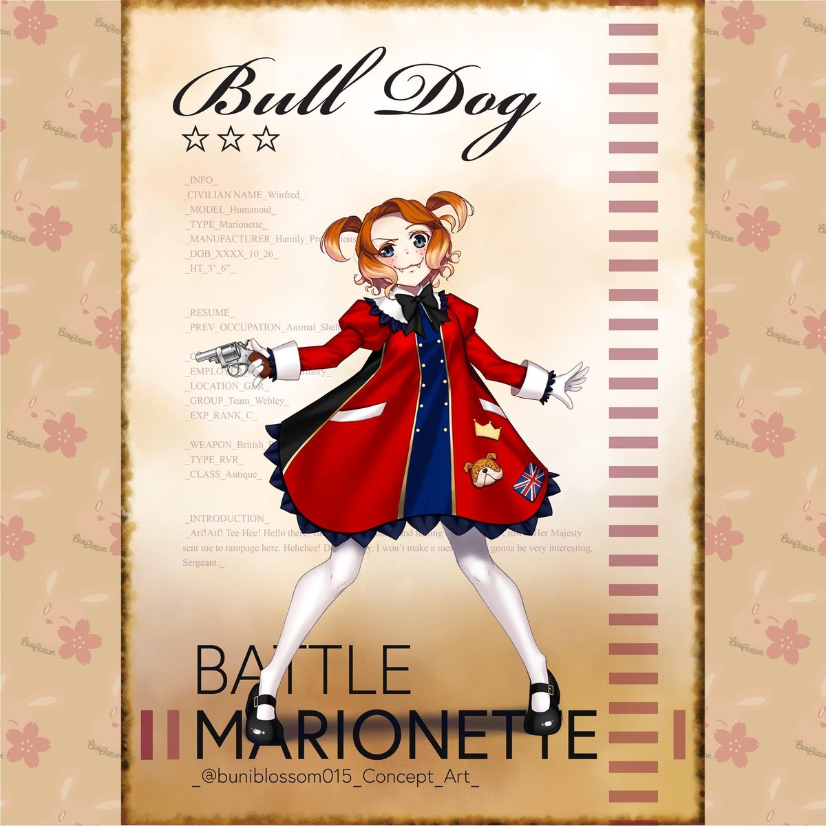 New post & New Marionette. Her code name is Bull Dog & based on the British Bull Dog Revolver. She is small, but very feisty. I tried to give her dog-like features since she is a "bulldog." 🐶 #art #inktober2021 #illustration #originalcharacter