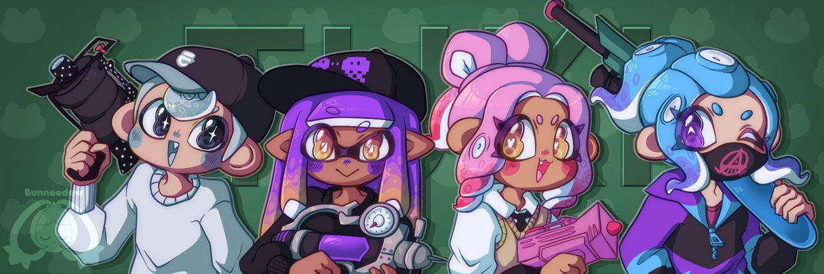Commission for @sakurazink of a team banner for Tuki! Thanks for working with me, it was a ton of fun! #Splatoon3