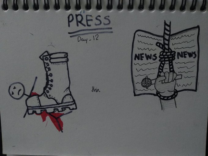 Spring Revolution of Myanmar + Inktober = Revotober Day 12 : Press #Revotober #Inktober #WhatsHappeningInMyanmar