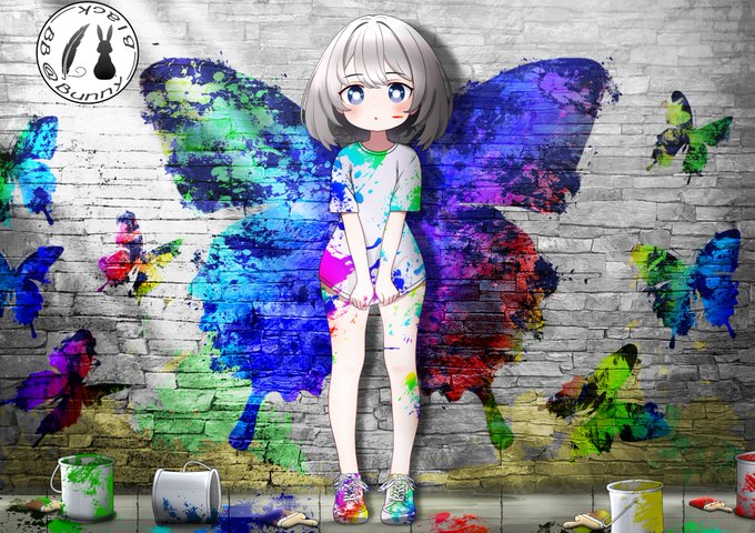 途中経過③ Wall art 【Butterfly】(仮) 鮮やかになって来た( ◠‿◠ ) 虹色バージョンとは別にシリーズ物として 7色それぞれのカラーバリエーションを用意して 販売するのも良いかもしれない🤔 疲れたので休憩_( _´ω`)_ペショ #illustration #イラスト