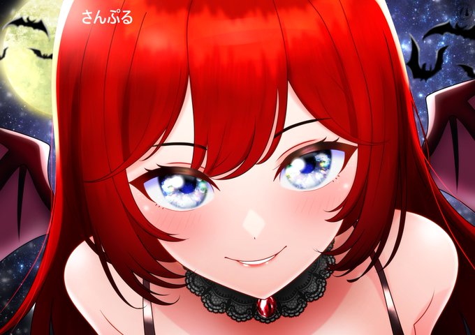 【 誘い -IZANAI- 】完成٩( ''ω'' )و 目などのバランス調整と 背景に蝙蝠を追加🦇 月にはドクロを投影しようと思いましたが 販売先の規約的にアウトな気がしたので 採用は見送りとなりました 最終調整をささっと終わらせようと思ったら 3時間も掛かってしまった #イラスト #illustration