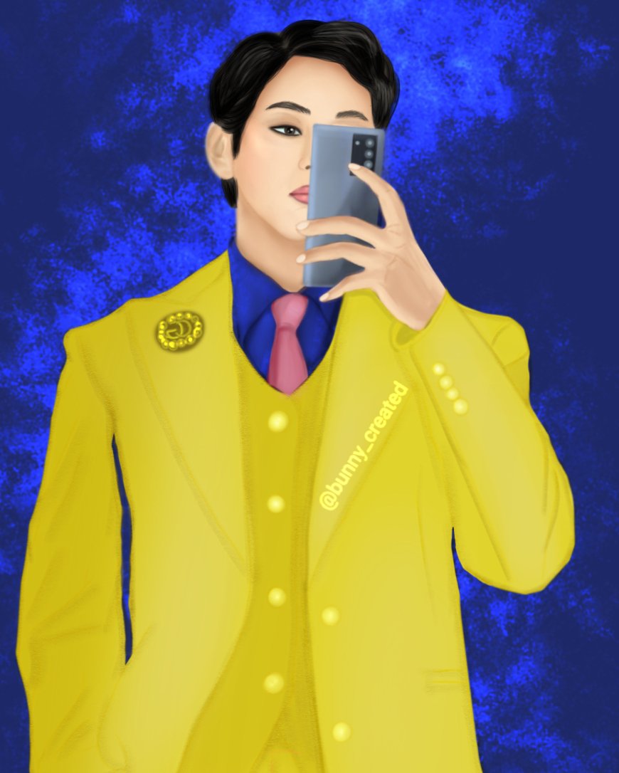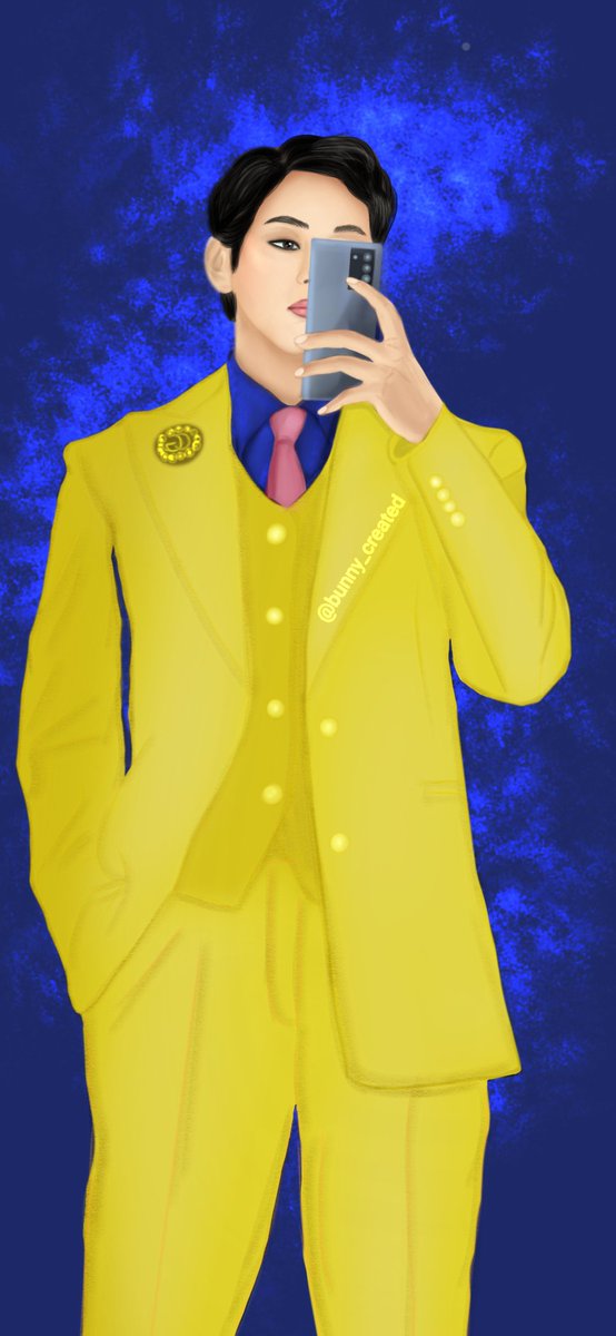 I've never seen anyone looking this gorgeous in a yellow suit🔥 You can use this as wallpaper ☺️ _ Don't repost without credits. Do not edit _ #KIMTAEHYUNG #TAEHYUNG #TaeTae #BTSV #방탄소년단 #kpop #btsfanart #FANART #wallpaper #painting #digitalart #artistsontwitter #Artist
