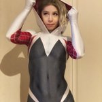 Selfie time!! Suit by ShebArt Studios Picture by @fieke_66 I am @SpiderVerseCos ‘ Spider-Gwen #spidergwen #SpiderManAcrossTheSpiderVerse #cosplay #gwenstacy #spidergwencosplay #ghostspider #bodysuit #faceshell
