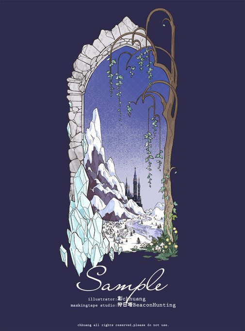 穿过葱郁树林 跨过石门 进入空凌雪国, 穿过暖春的绿 跨过石门 进入凛冬的白。 #線画 #線画配布 #イラスト #落書き #オリジナルイラスト #pixiv #procreate #procreateart #ipad #illustration #Original #セルロイド