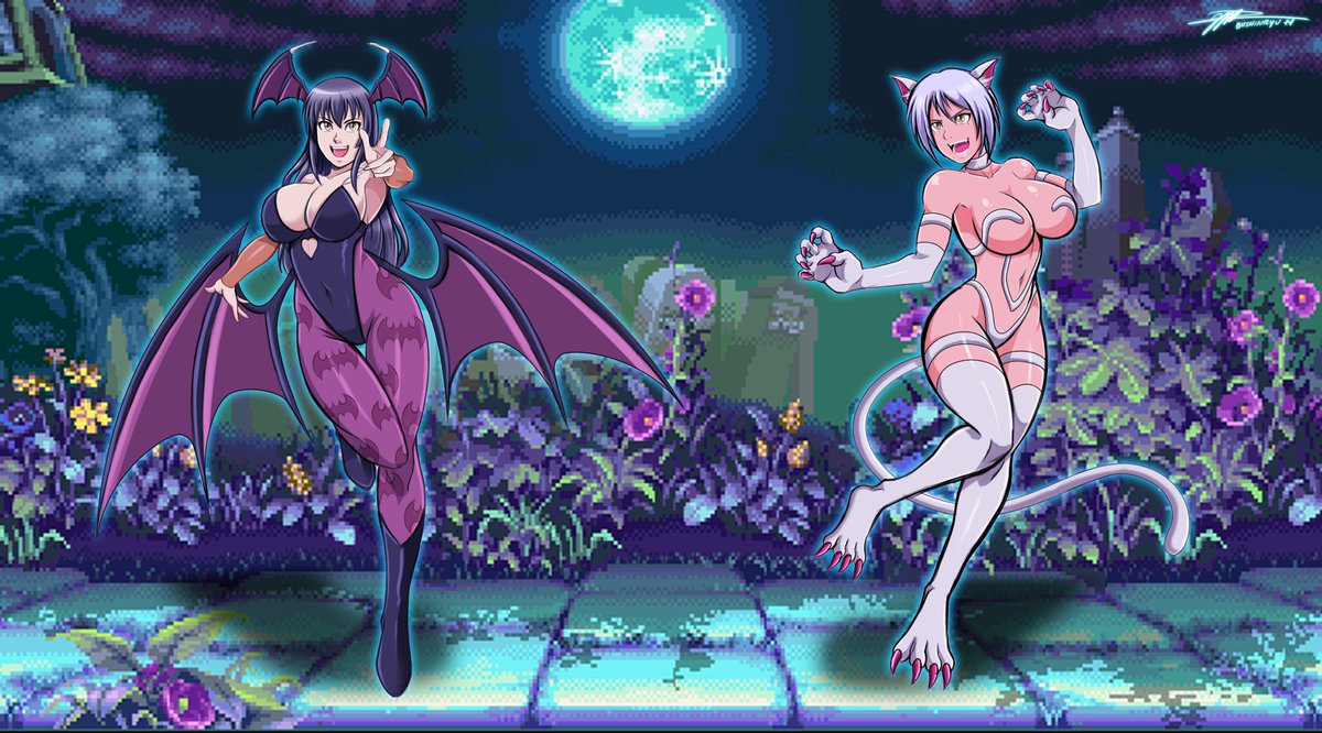 A comission is done!!! Sakura and Rio Halloween Day see moren in my accounts DA: deviantart.com/bushinryu11 Pixiv: pixiv.net/en/users/57120… Twitter: @Bushinryu_sama #comissionsopen #halloween2021 #digitalart #cosplay #morriganaensland #felicia #darkstalkers