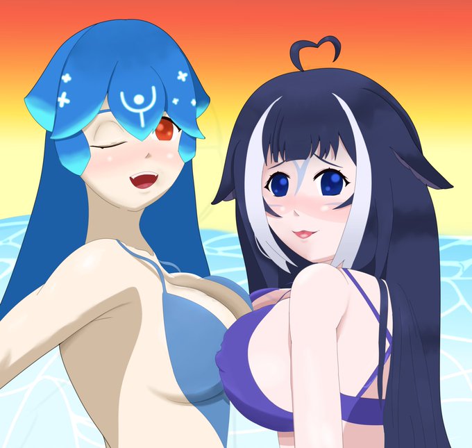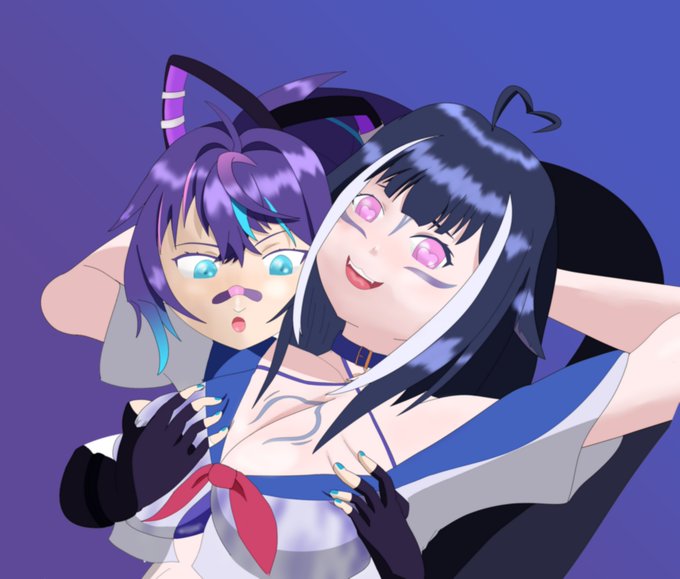 And finally one of my very first digital arts, for Mel's 1st anniversary. Feels like a lifetime ago. That's me down there; it's my VRChat model / me when I was VTubing on-and-off for a time. #projektmelodyfanart