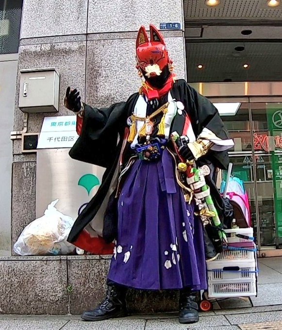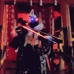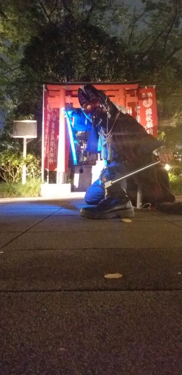 3 12 #狐の面 #狐面 お面は、#狐面堂 さんのものです。 #コスプレ #TDC #飛魔陣 TDCの稲荷様で新しい相棒と… 19/10/06 21:31