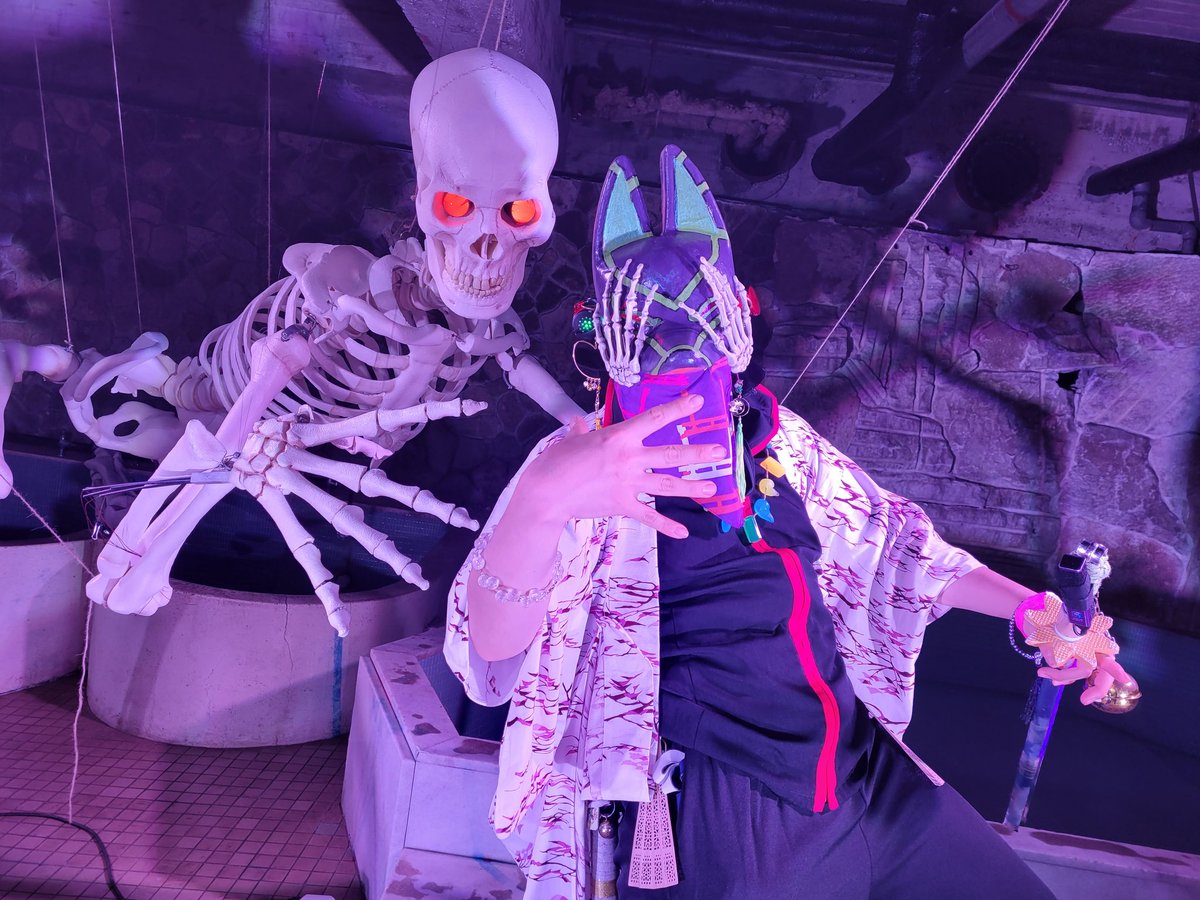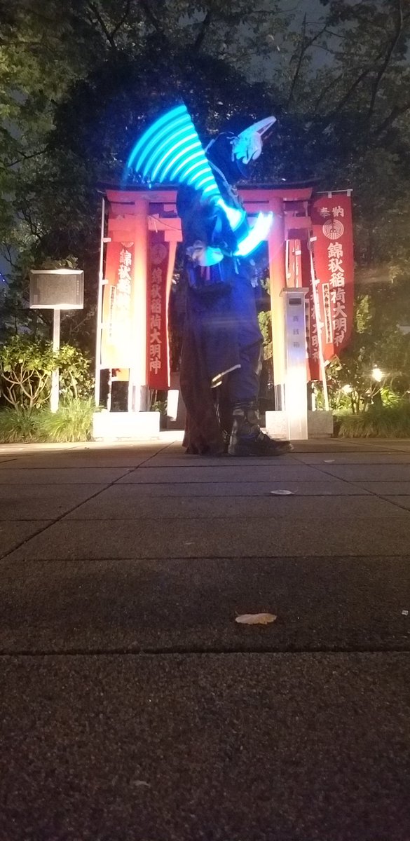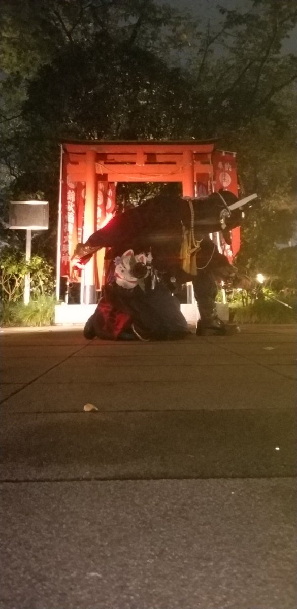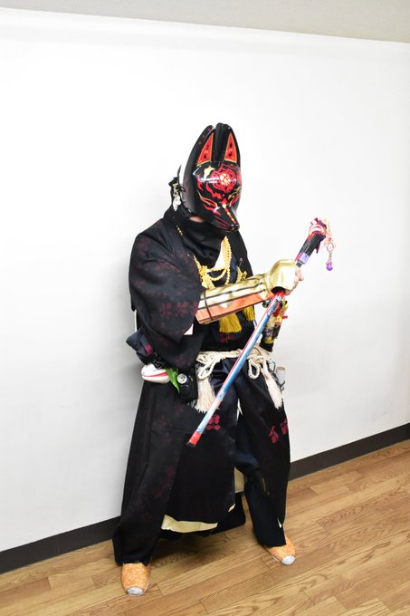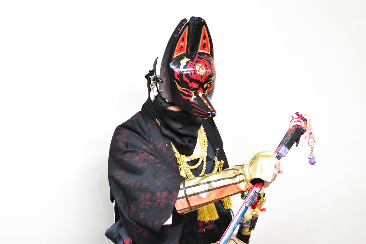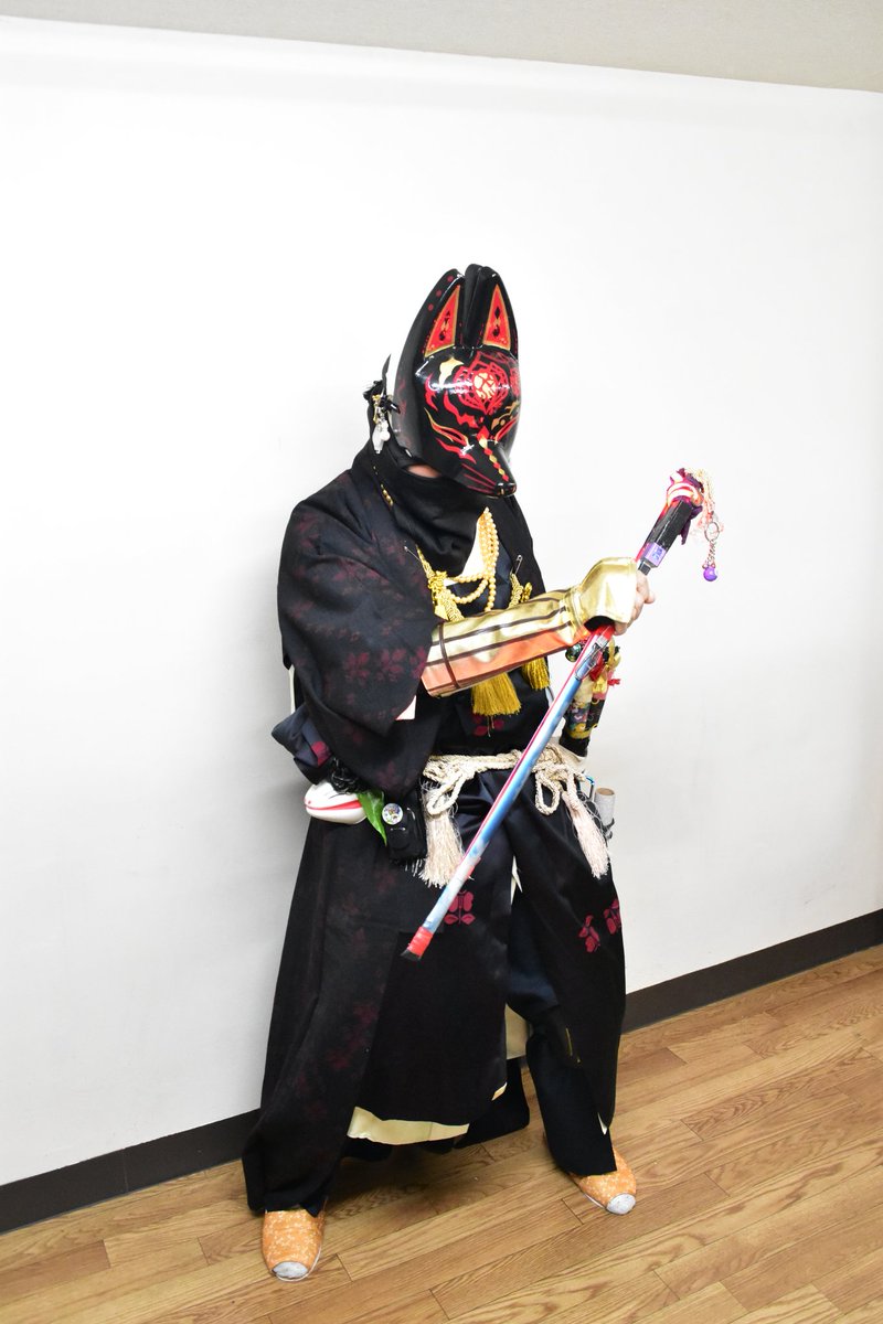 #狐の面 #狐面 お面は、#狐面堂 さんのものです。 #コスプレ #TDC #飛魔陣 TDCの稲荷様で新しい相棒と…