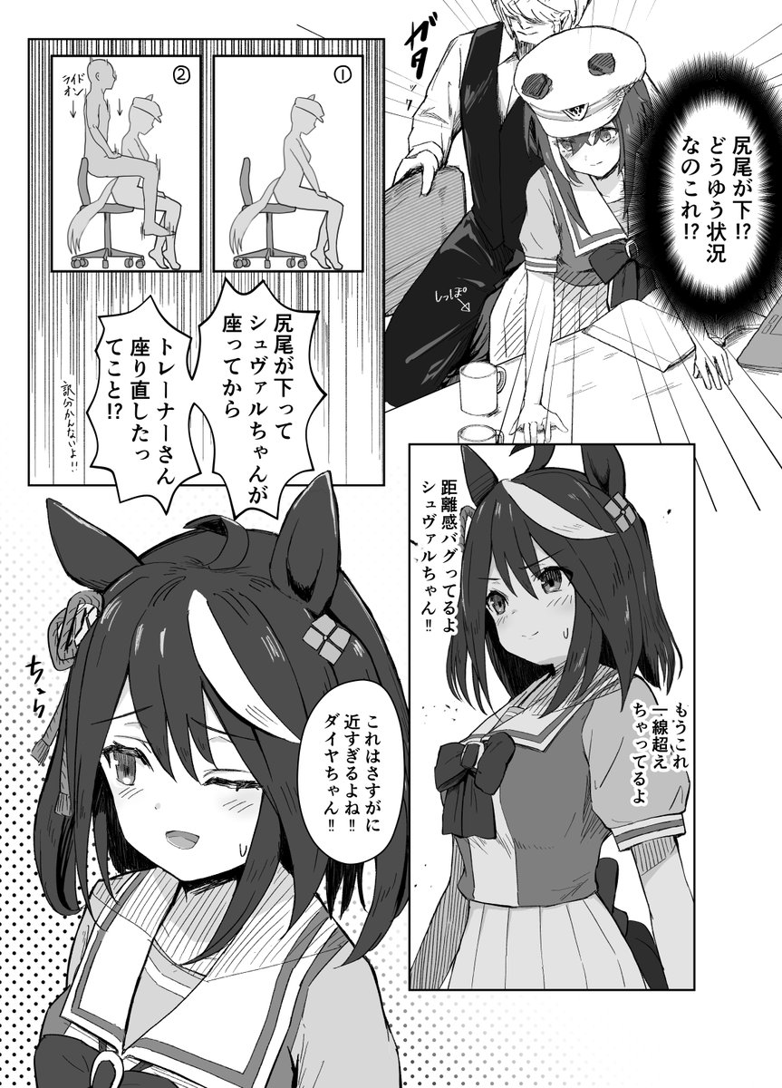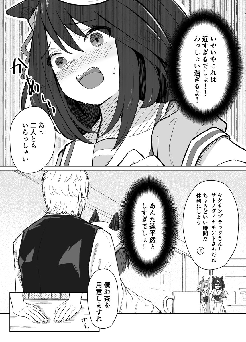 距離感がバグってるシュヴァルグランの漫画後半です(1/2) #ウマ娘 #シュヴァルグラン #キタサンブラック #サトノダイヤモンド