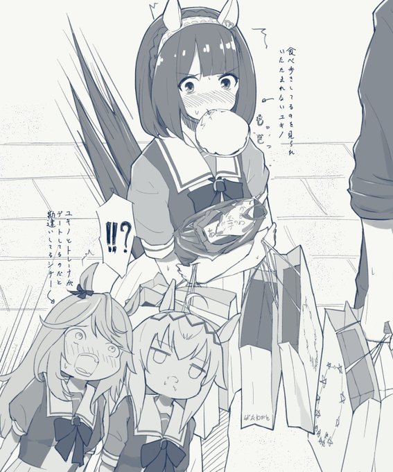 識者はカモメの玉子パンを食す ご当地ショップからの帰路にて… #ウマ娘 #ユキノビジン