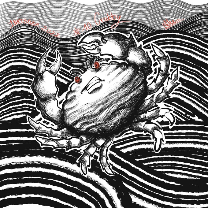 Inktober 2022 🫧 Day 10 : Crabby #inktober2022 #inktober #art #ink #crabby #crab #blackandwhite #artist #artistsontwitter #digitalart