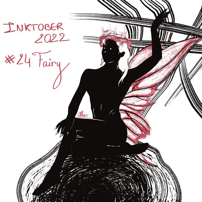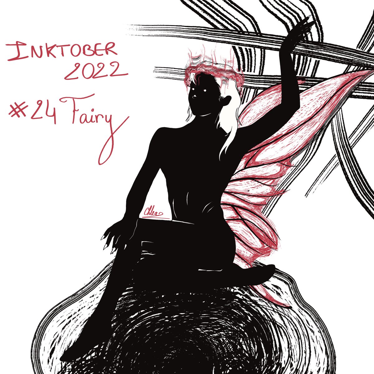 Inktober 2022 🫧 Day 24 : Fairy #inktober2022 #inktober #art #ink #fairy #blackandwhite #artist #artistsontwitter #digitalart