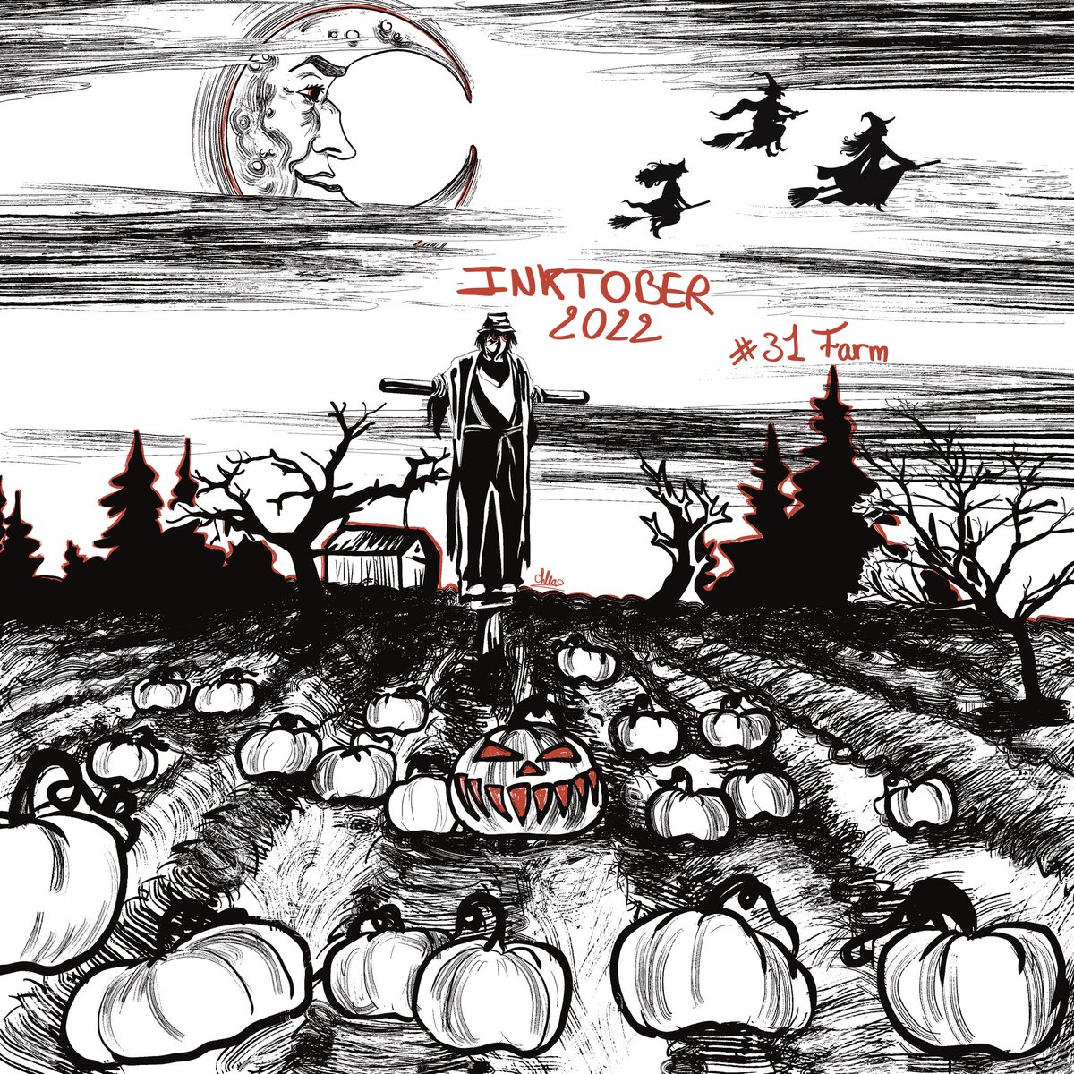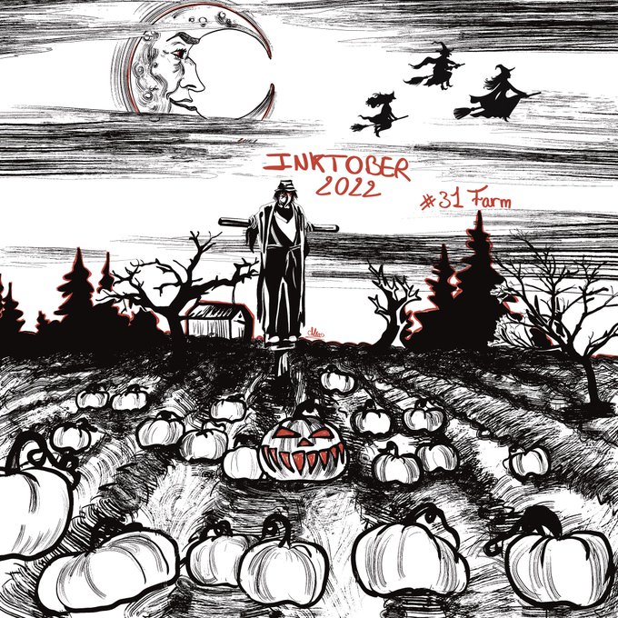 Inktober 2022 🎃 Day 31 : Farm #inktober2022 #inktober #art #ink #farm #Halloween #blackandwhite #artist #artistsontwitter #digitalart