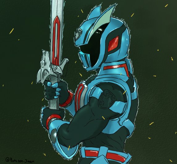 #特撮版深夜の真剣お絵描き60分一本勝負R ⑥青でガルさん 「よーしよし、”頼れる仲間”の俺が遊んでやるけぇの…アイテッ」