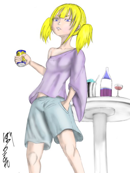 背景描くの嫌いですわ! だって大変なんですもの! キャラクターだけ描いていたいわ! 定規……? めんどい!! 全部フリーハンドじゃい! 皆さん今日も一日お疲れ様です! #イラスト #オリキャラ #イラスト好きな人と繋がりたい 題名 「そこにあるから勝手に飲んで」