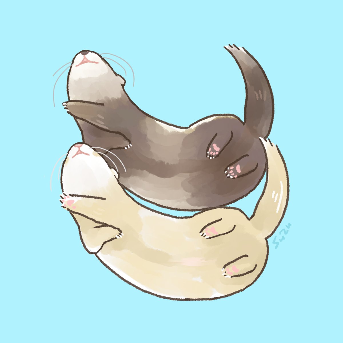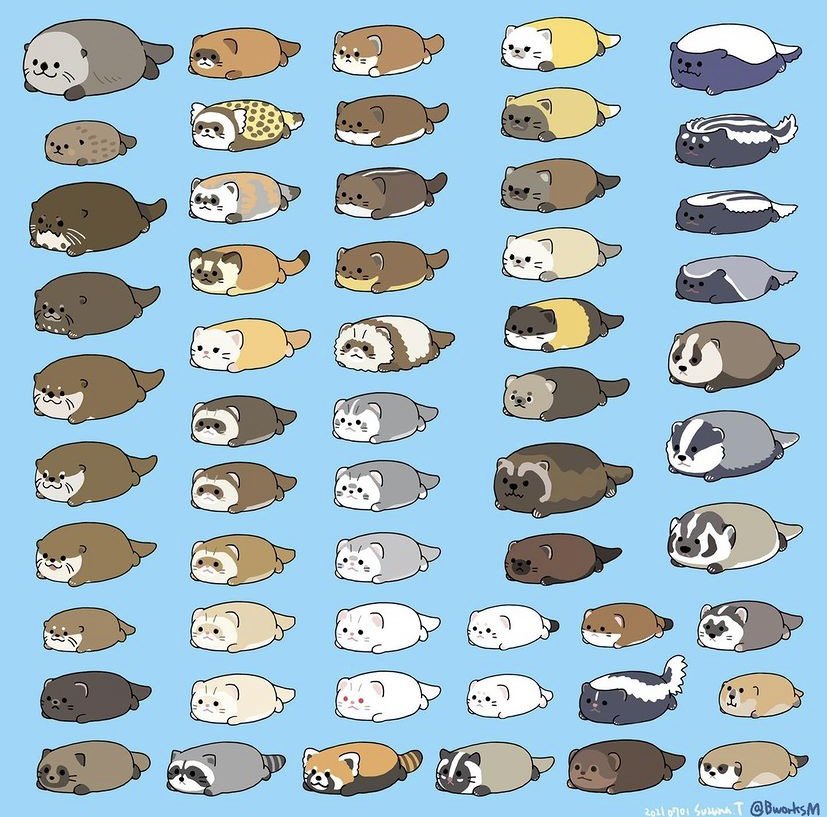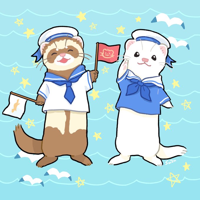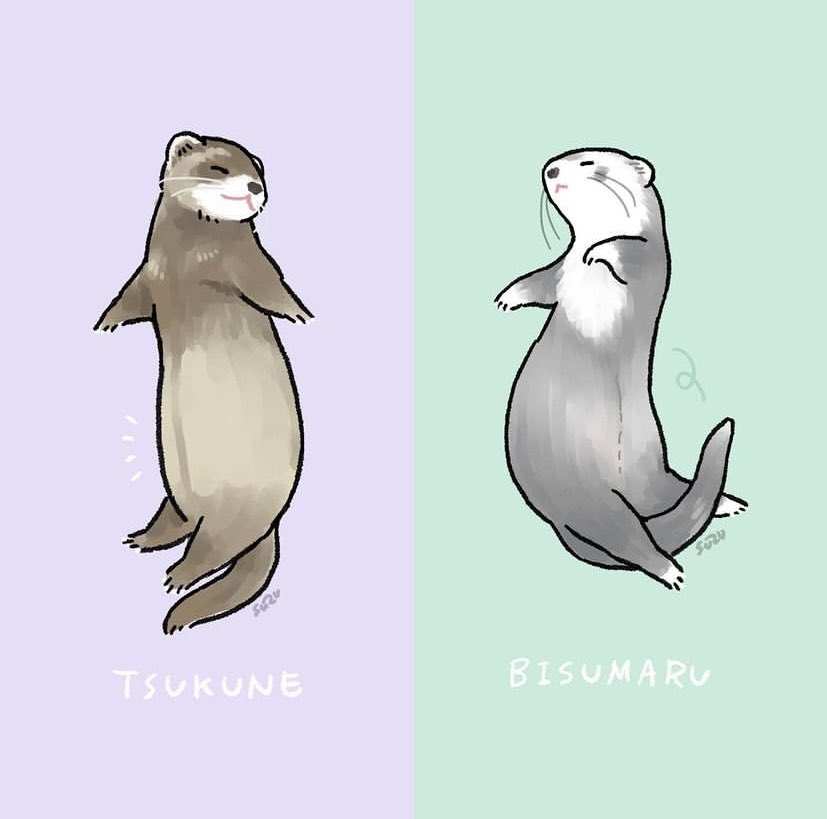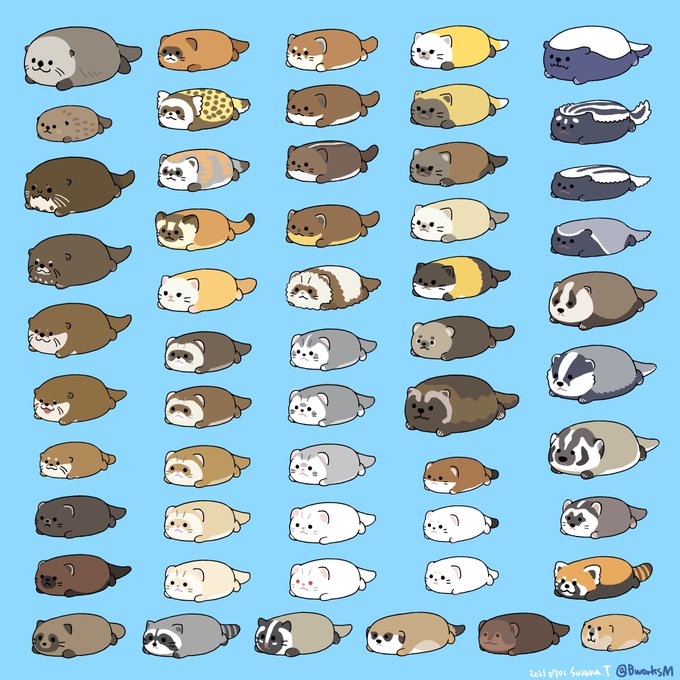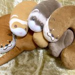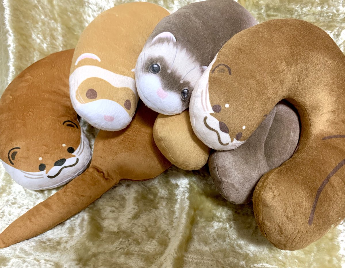 デザイン途中ですがネックピロー試作品進めています。 フェレットはリアル系は作風的に向いてない気がするので、キャラクターぽい方で進めたいなと思っています。カワウソは色が明るい方かな… twitter.com/bworksm/status…