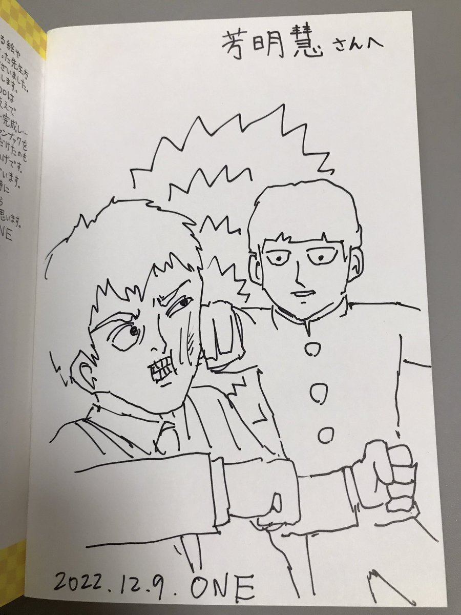 1187 4628 モブサイコのONE先生にサイン描いて頂けました。ONE先生、有難う御座います!宝物にします! 22/12/10 00:49