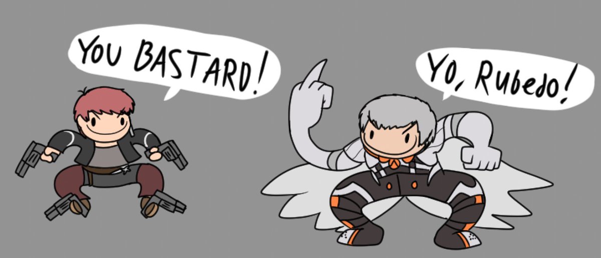 to commemorate the end of me watching a buds playthrough of xenosaga 1-3, here is the two sillies Junior and Albedo :3