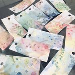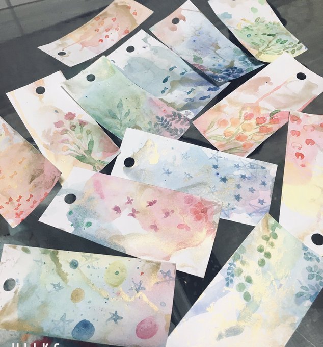 アクリルタグ制作🏷 アクリル絵の具と水彩絵の具でアルコールインクアート風を醸し出す😆 #サンキュータグ手作り #手描きイラスト #アクリル #水彩 #水彩タグ #アルコールインクアート風 #アネコの雑貨屋さんの日 #納品予定