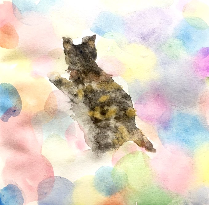 生後1年の後ろ姿と生後間もない頃の後ろ姿 #watercolor #watercolorpainting #kittycat #cat #水彩 #수채화일러스트 #生後0か月 #後ろ姿が好き