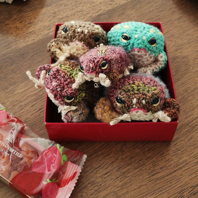カエル詰め合わせセット 『OMOCHI』SELECTION』 完成✨🐸🌸 リストも作った!オレ偉い! 明日発送予定です。 いってらっしゃ~い(っ'-')╮ =͟͟͞͞🐸ブォン #あみぐるみ #春日井カエルまつり twitter.com/C3_Rex/status/…