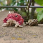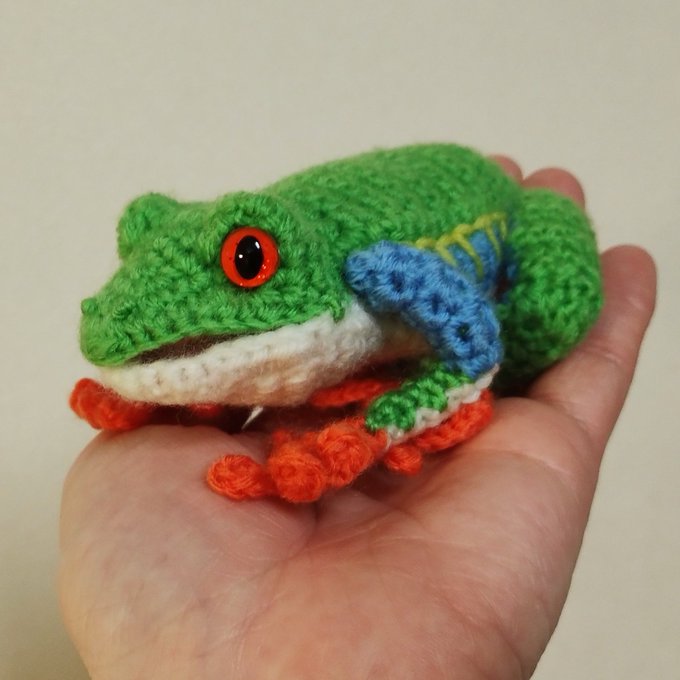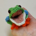 ほんのちょっと鼻先伸ばした ほんと、ちょっぴりだけど🐸 あと、何色にしようかなー?('▽') この子も #春日井カエルまつり にぶっ込みます。 #アメフクラガエル #あみぐるみ #カエル #きな粉まぶしわらび餅