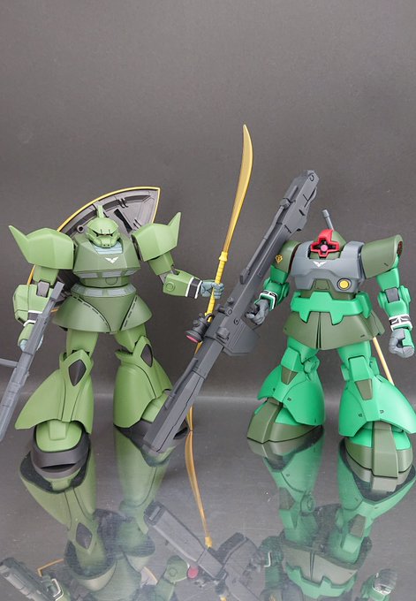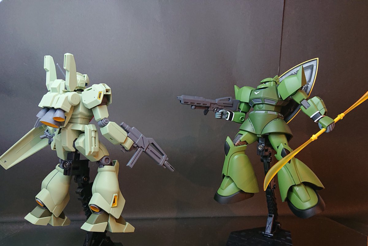 #今月作ったプラモ晒そうぜ おはようございます✋ 今月は五月病っぽいのになってたので出来たてのドム1機でした😆 ゲルググは先月末のですが1年戦争の袖付きコンビで☝️ 今月最後の今日もよろしくお願いします🙇♂️