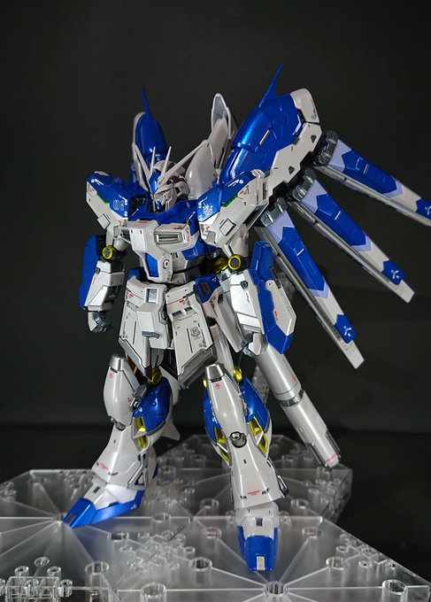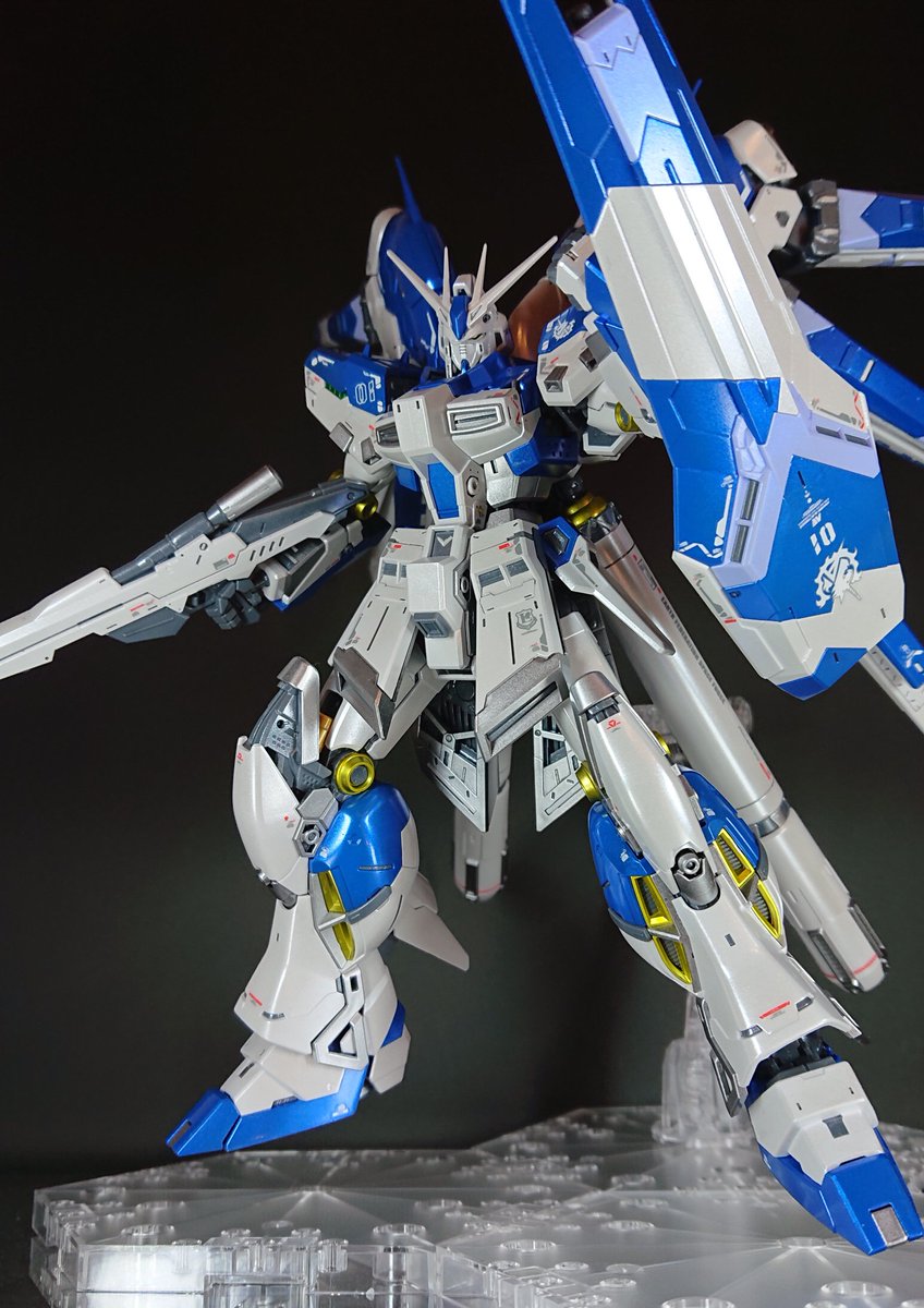 おはようございます☀️ やっとHGですがHi-ν完成しました‼️ 全身にクリスタルカラーを塗りました😊 この色を強調したいのでデカールは少な目にしてます✨ #うみんちゅ杯2022春 #ガンプラ
