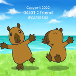 #capypril #Capybara #カピバラ #illustration #動物イラスト 日ごとに違うお題に沿ってカピを描く企画に参加♪ 今日は仲良し子カピ