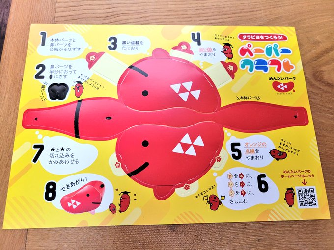 #めんたいパーク群馬 #たらぴよ #ペーパークラフト 久しぶりに工作をして楽しかった。