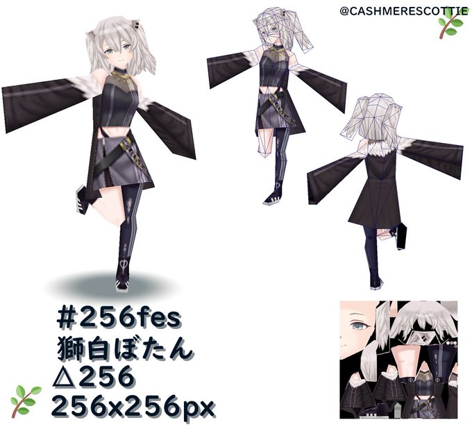 期限過ぎてたけど折角作ったので 🌿🌿 △256 Tex.256x256px デフォルメ獅白ぼたん✨ モデル5時間+テクスチャ8時間 突貫だったからそのうちブラッシュアップしよう😌 #256fes #ししらーと