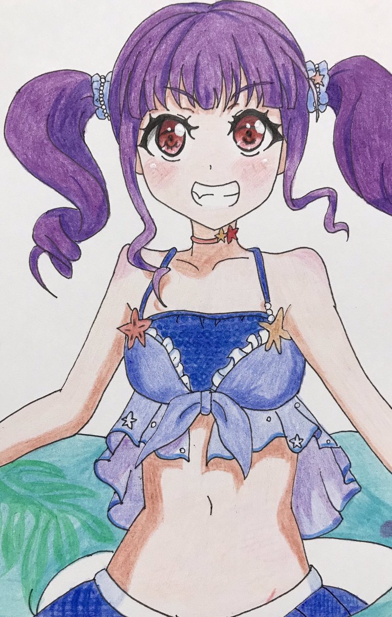 16 87 セリアルねーねを描きました!! 夏っぽいの描きたくて٩(๑>◡<๑)۶ #黒ウィズ #色鉛筆 20/06/29 19:44