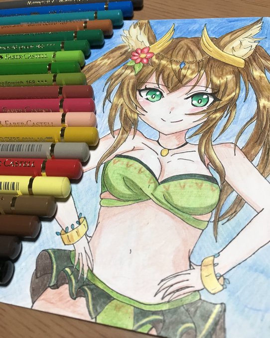 セリアルねーねを描きました!! 夏っぽいの描きたくて٩(๑>◡<๑)۶ #黒ウィズ #色鉛筆