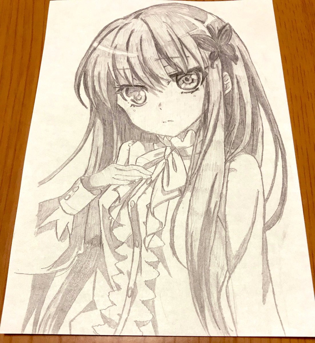 湊友希那先輩描きました(❁´ω`❁) 目が大きくて若干ロリっぽくなってしまった💦#シャーペン画 #湊友希那