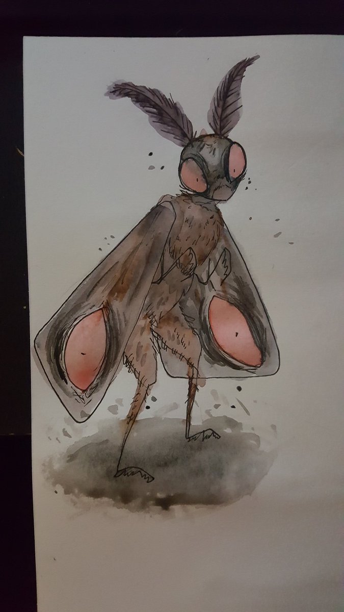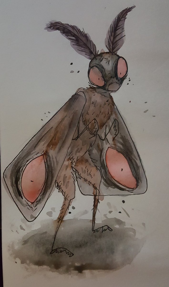 Omg! I forgot to post my fancy little mothman! I wanted a more mothy mothman so heres this creepy lil guy! #mothman #inktober2020