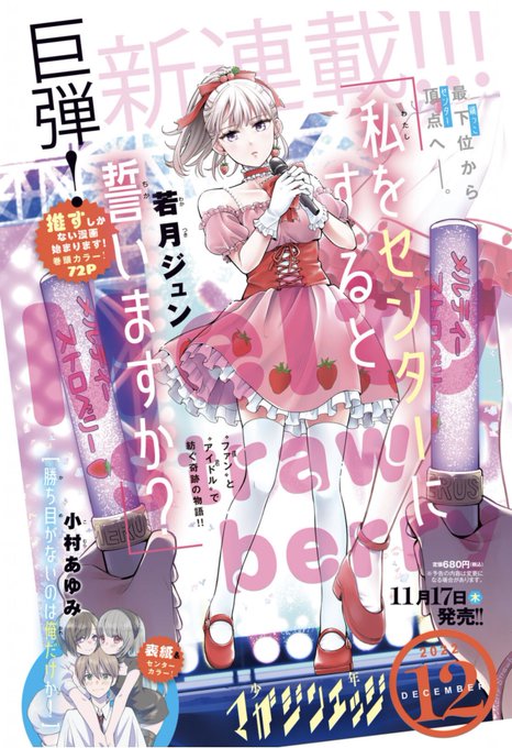 予告載ったのでお知らせします! 来月11月17日(木)発売の「マガジンエッジ」12月号から連載させていただけることになりました✨ アイドルが好きな方にも、そうでない方にも刺さる漫画になるよう頑張ります! #私をセンターにすると誓いますか?