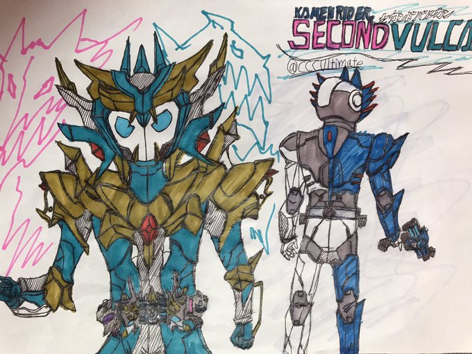 【仮面ライダーセカンドバルカン】 アナザーバルカン誕生により、変身できなくなった不破諫が変身するオリジナルライダー兼アナログイラスト #仮面ライダーバルカン #不破諫 #ライダー計画if #令和ライダー #仮面ライダー #2号ライダー #絵描きさんと繋がりたい #アナログ絵