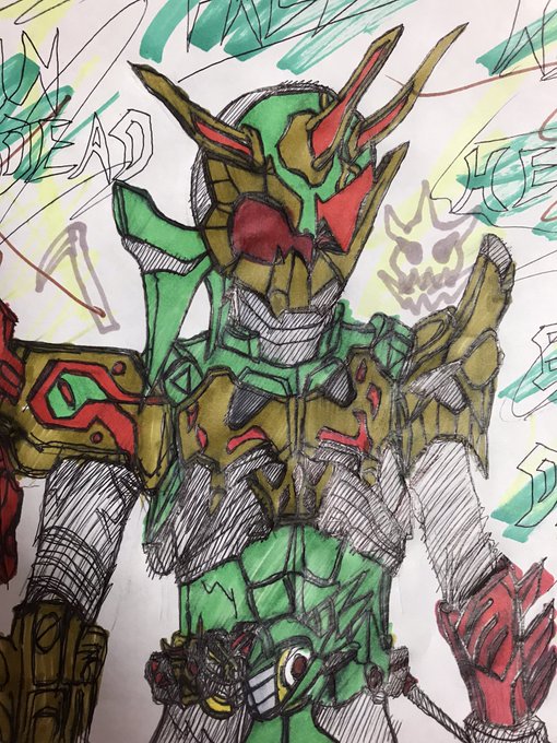 kamen rider berserk vampire gamer Level XX #仮面ライダーエグゼイド #オリジナルライダー #ライダー計画IF #色鉛筆 #シャープペン #ボールペン
