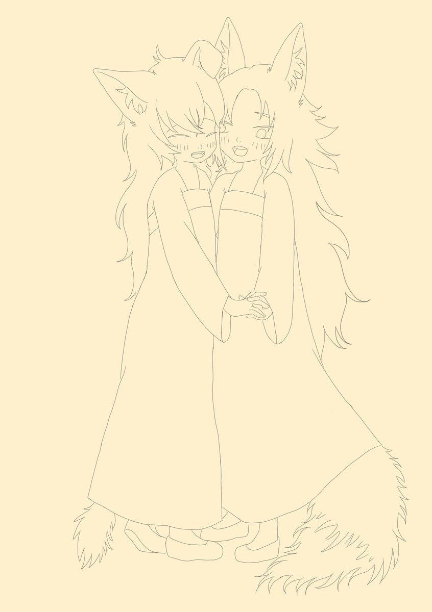 #shxtou #MystArt 性轉的狗勾和狐狸~~ (線圖again。有動作參考)