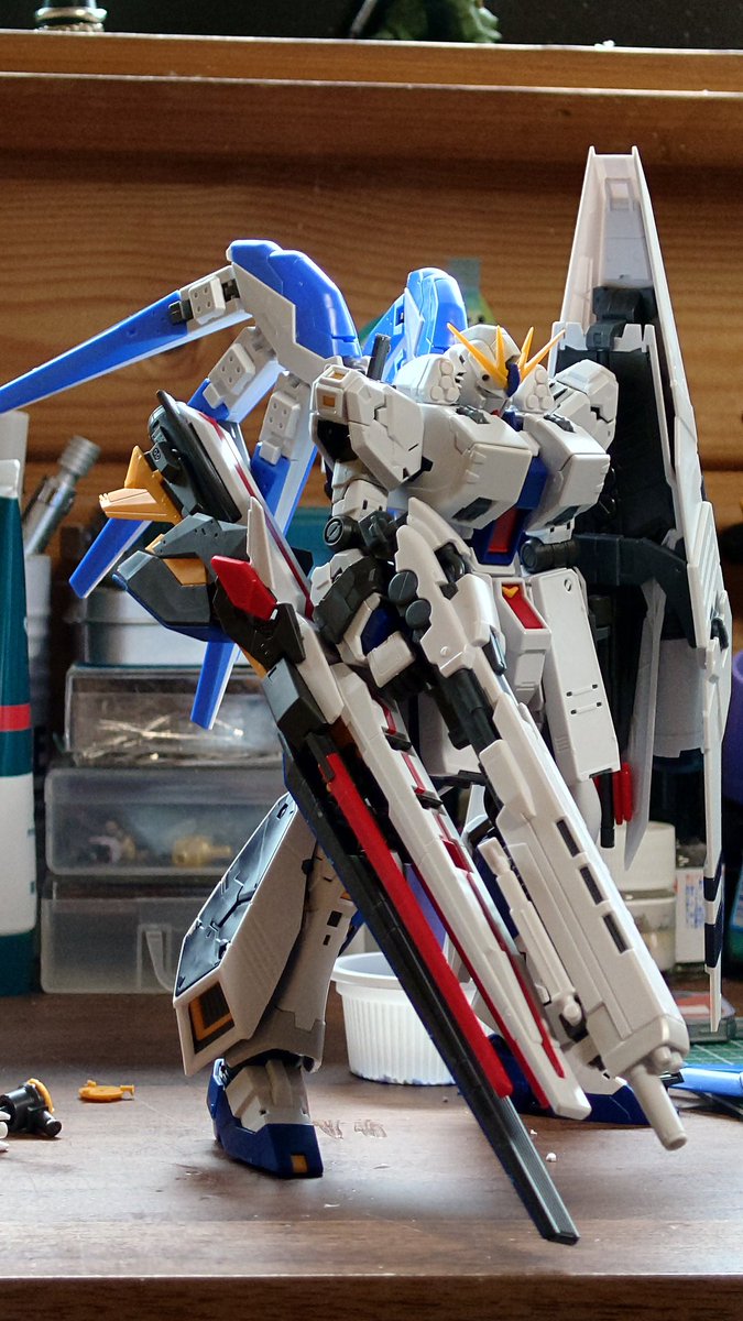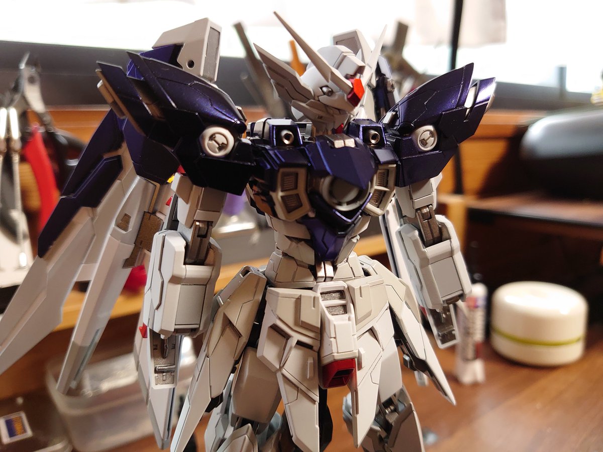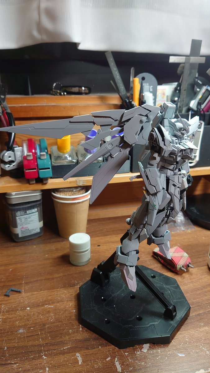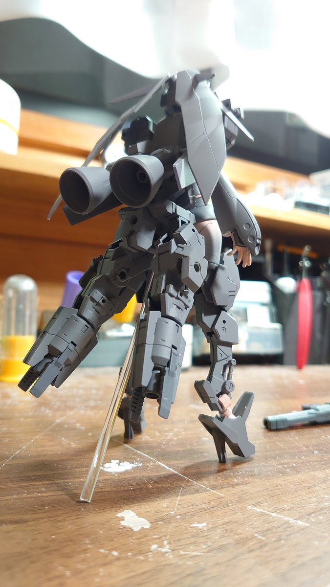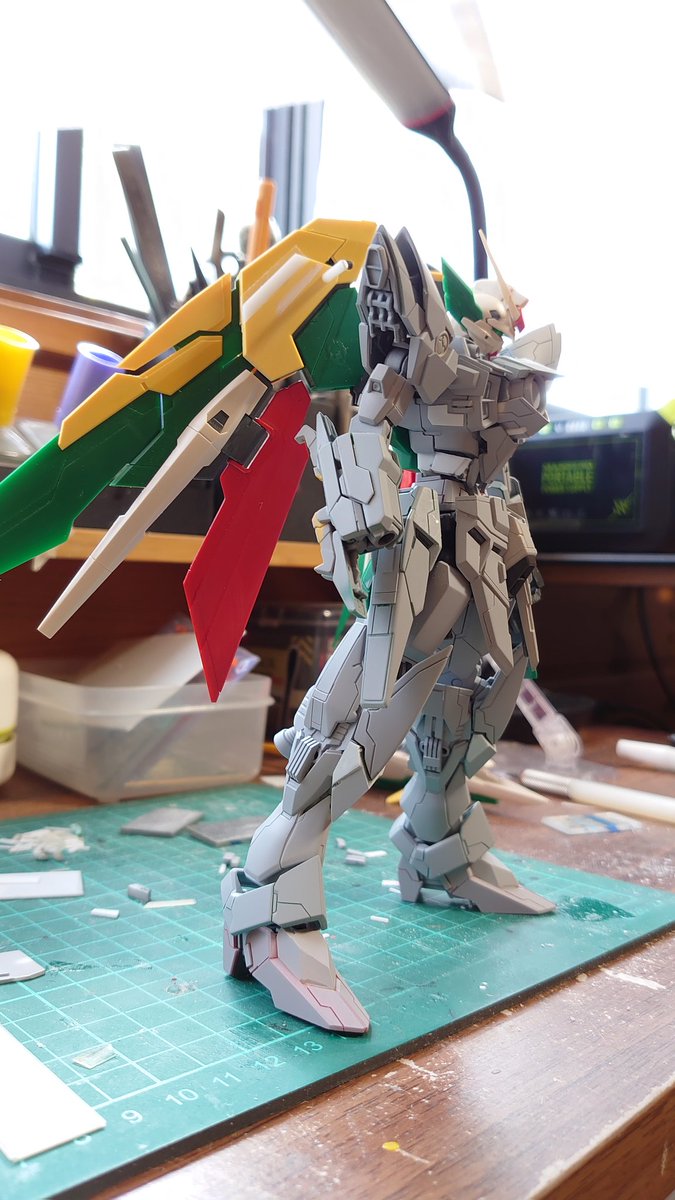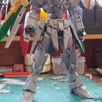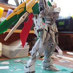 MG V2AB。各部位延長。 肩を上方へ2mm。それに伴って肩アーマーを下方向へ大型化。 足首を2mm延長。膝関節を削って、鳥足気味に。あとは首を2mm延長。 全部ABS素材なので同ランナータグを挟んで接着しました。 可変機能は残す方向で。 #ガンプラの画像を貼るとRTされると聞いて #ガンプラは自由だ