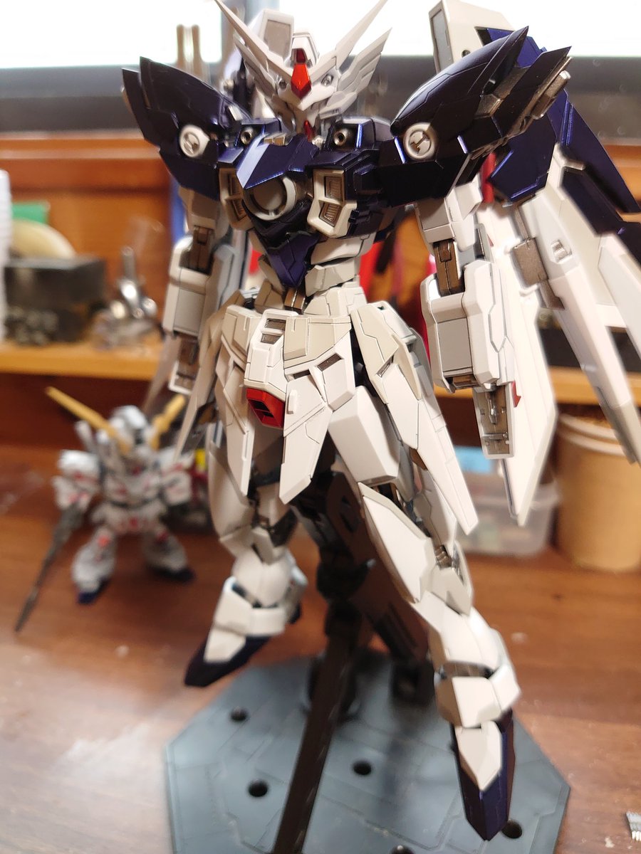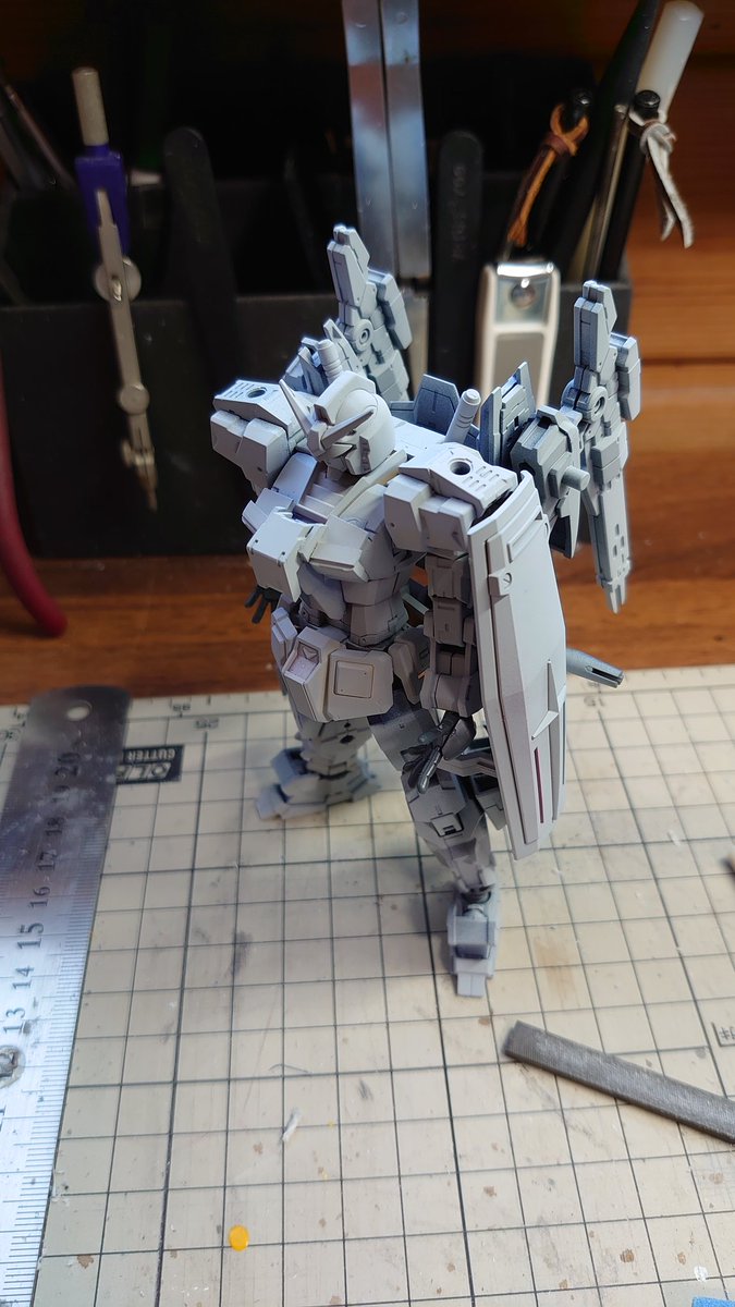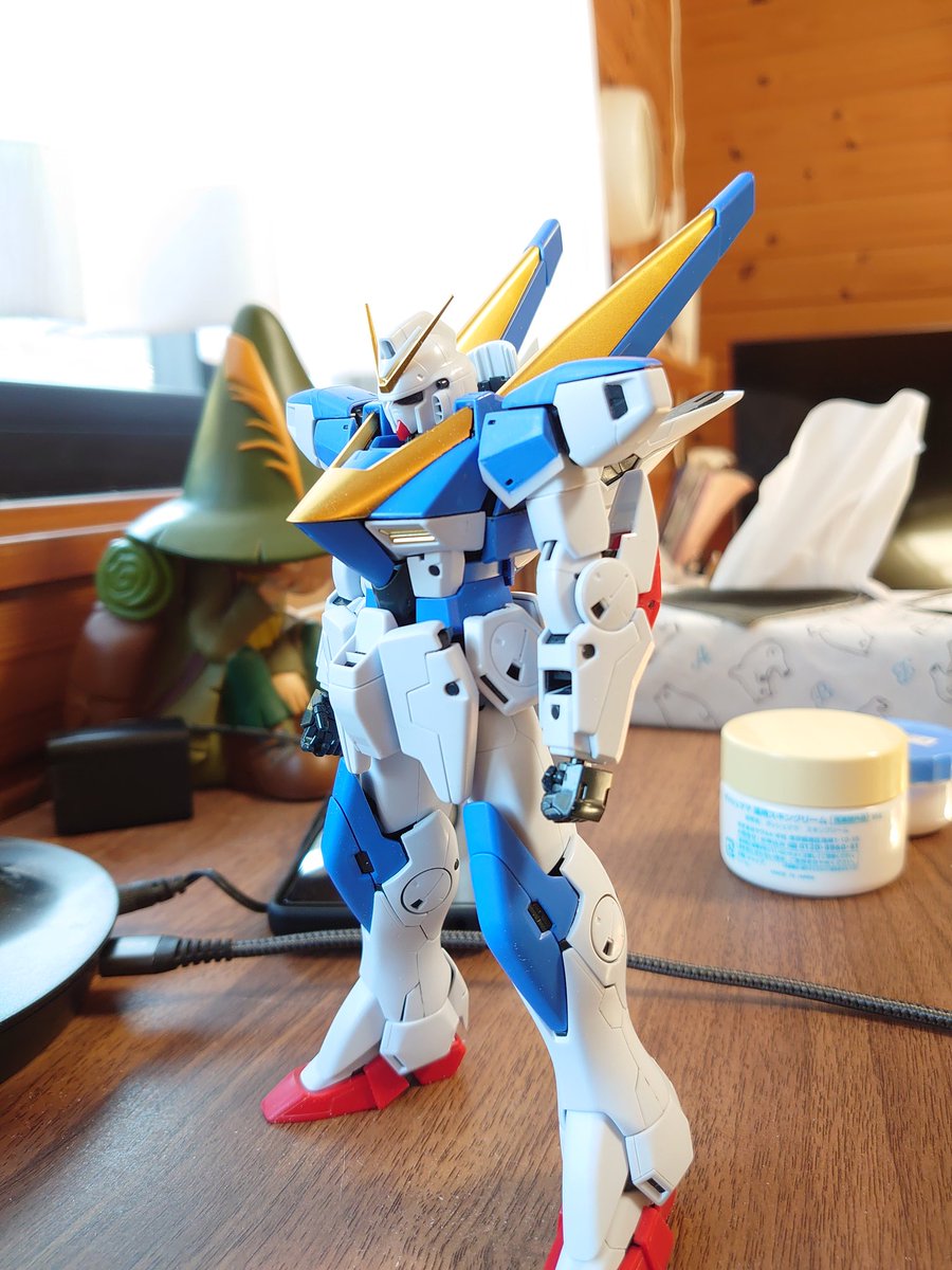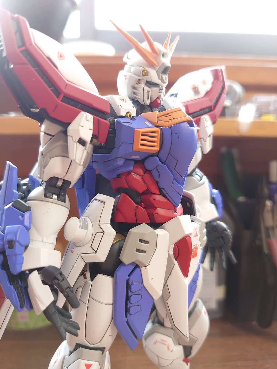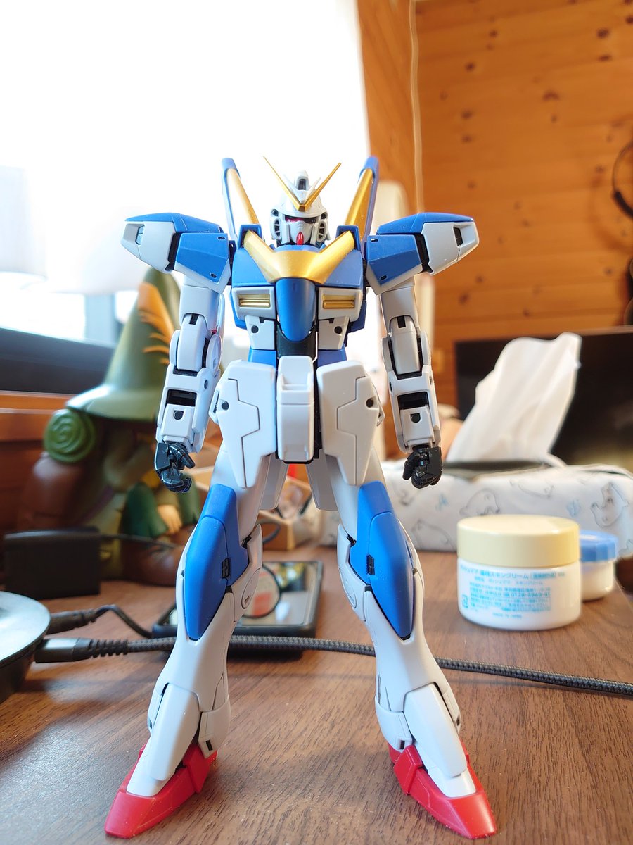 MG V2AB。各部位延長。 肩を上方へ2mm。それに伴って肩アーマーを下方向へ大型化。 足首を2mm延長。膝関節を削って、鳥足気味に。あとは首を2mm延長。 全部ABS素材なので同ランナータグを挟んで接着しました。 可変機能は残す方向で。 #ガンプラの画像を貼るとRTされると聞いて #ガンプラは自由だ