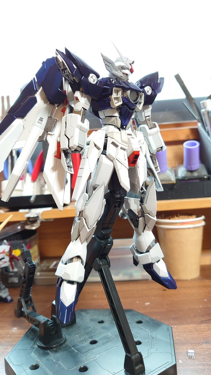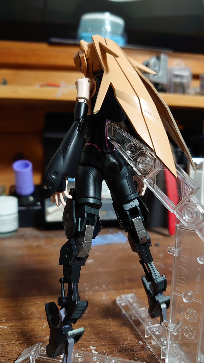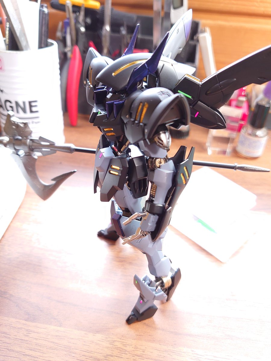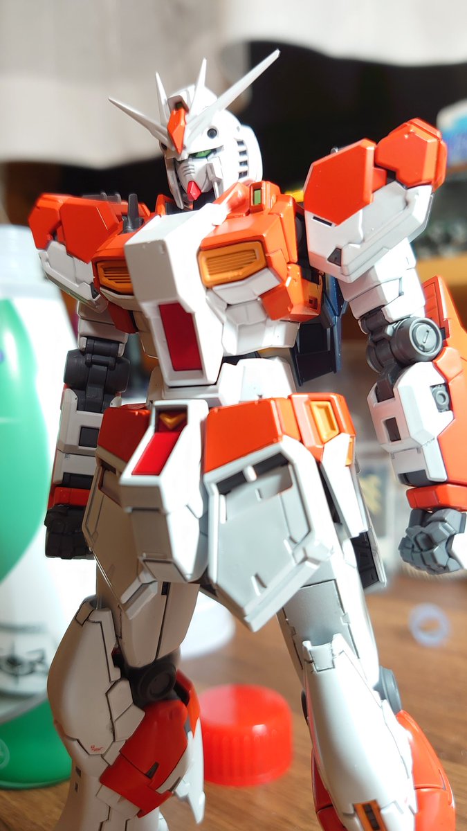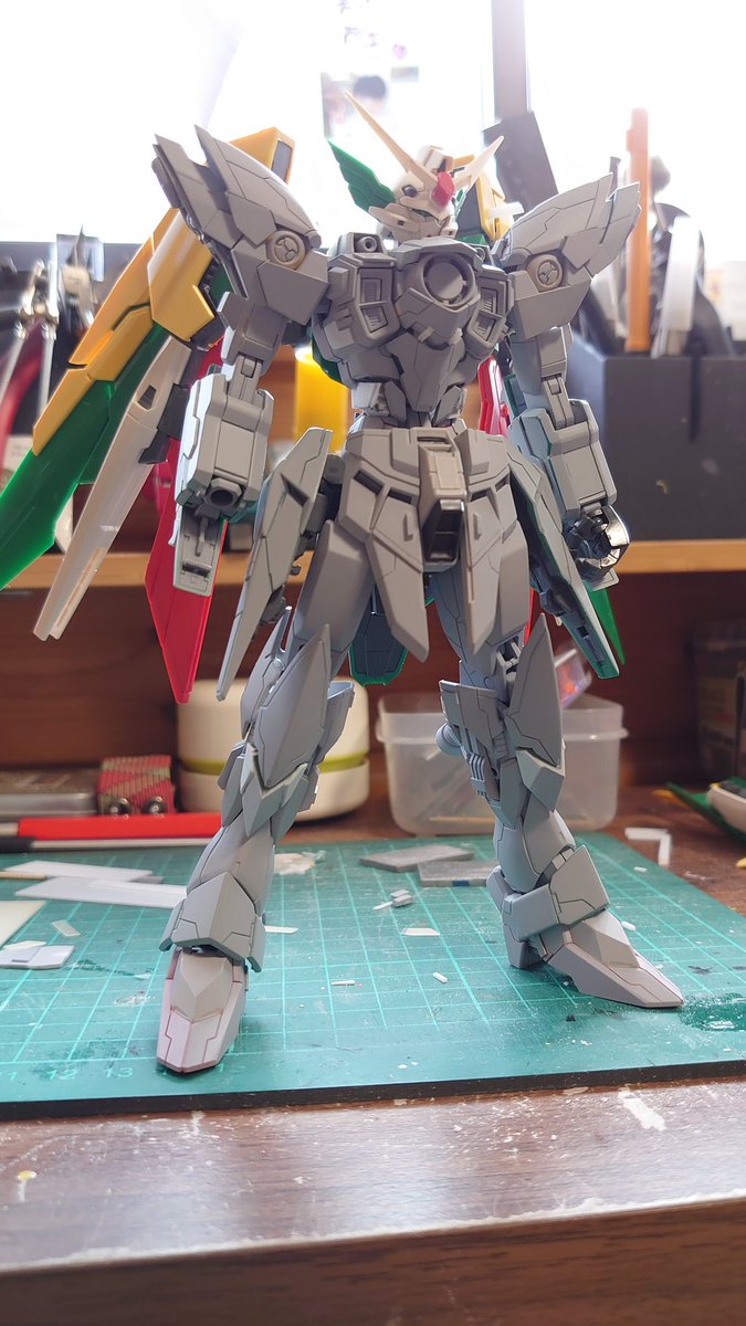 MG V2AB。各部位延長。 肩を上方へ2mm。それに伴って肩アーマーを下方向へ大型化。 足首を2mm延長。膝関節を削って、鳥足気味に。あとは首を2mm延長。 全部ABS素材なので同ランナータグを挟んで接着しました。 可変機能は残す方向で。 #ガンプラの画像を貼るとRTされると聞いて #ガンプラは自由だ