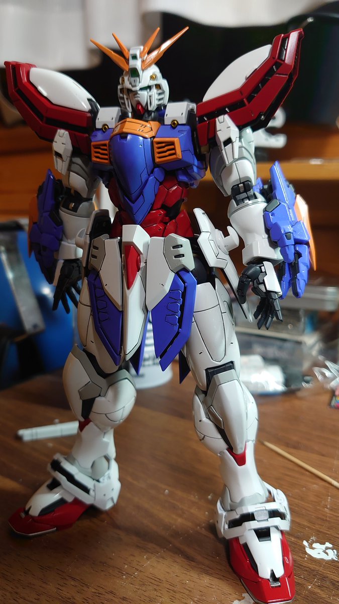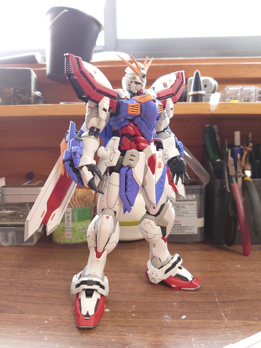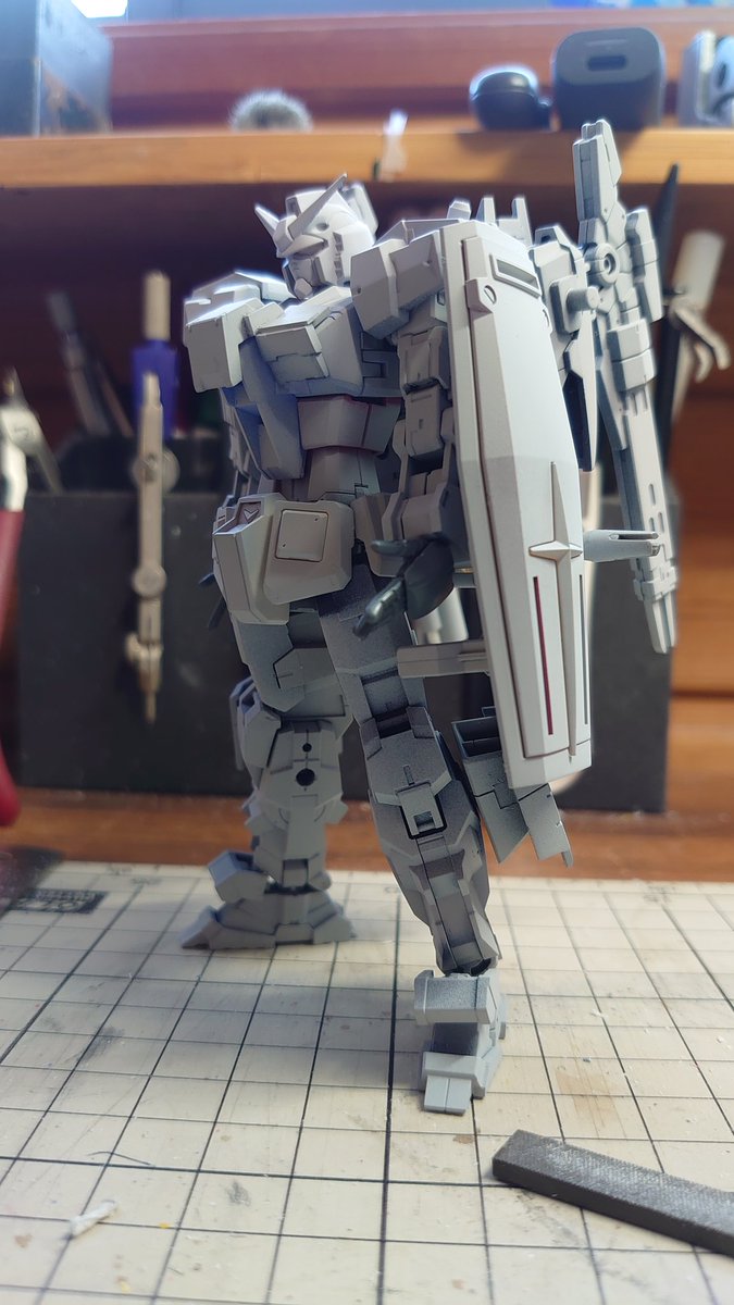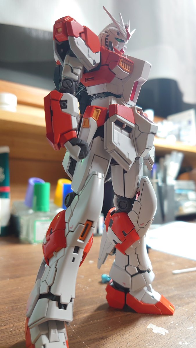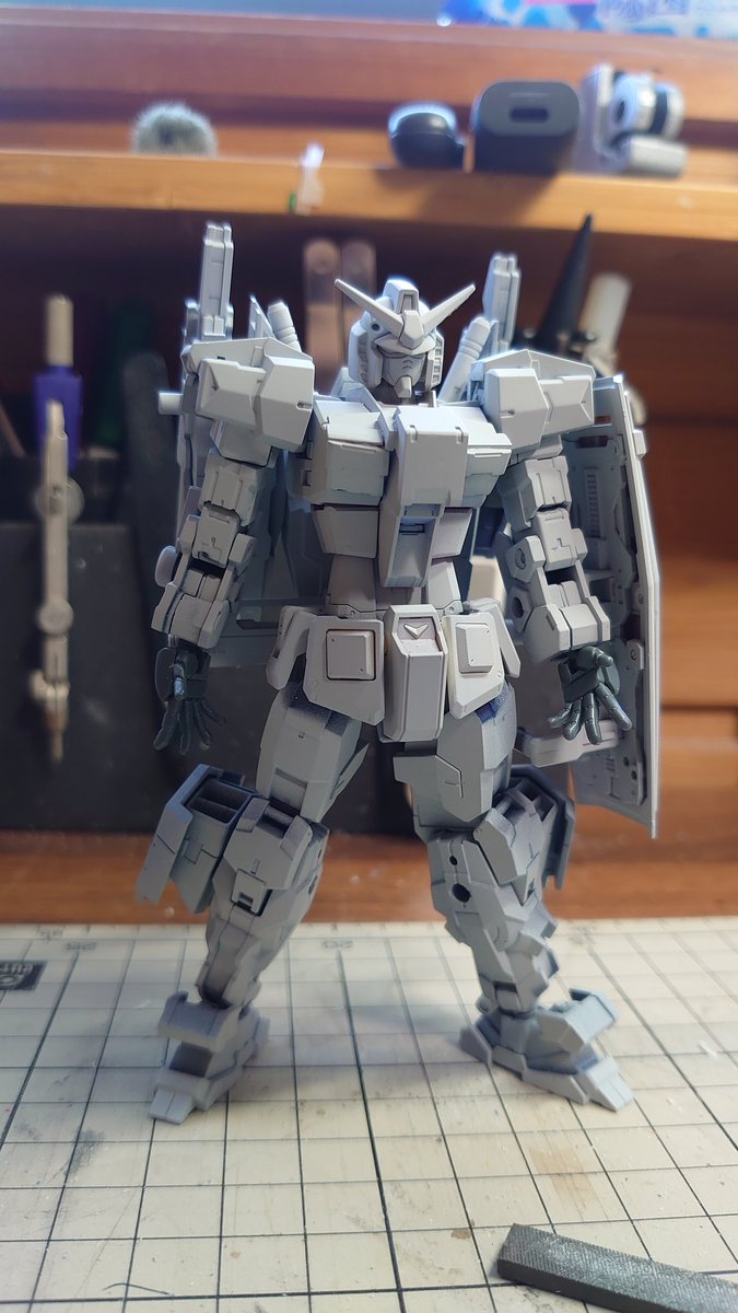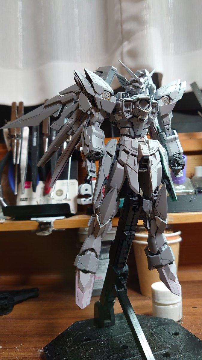 MG V2AB。各部位延長。 肩を上方へ2mm。それに伴って肩アーマーを下方向へ大型化。 足首を2mm延長。膝関節を削って、鳥足気味に。あとは首を2mm延長。 全部ABS素材なので同ランナータグを挟んで接着しました。 可変機能は残す方向で。 #ガンプラの画像を貼るとRTされると聞いて #ガンプラは自由だ