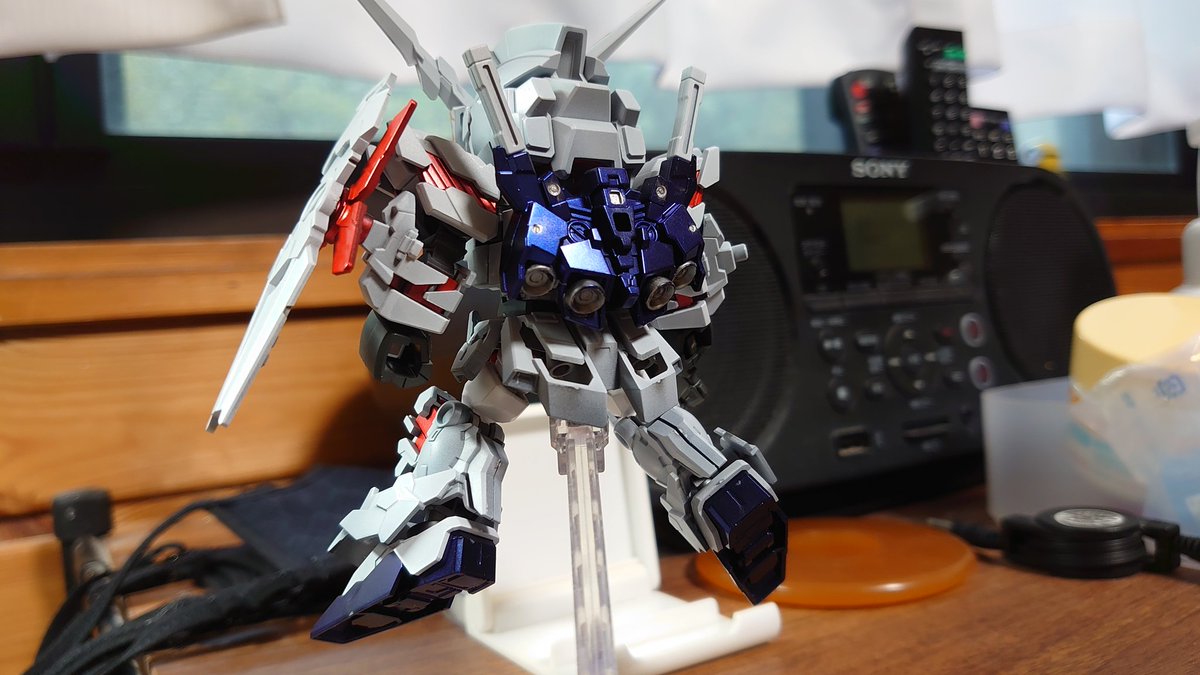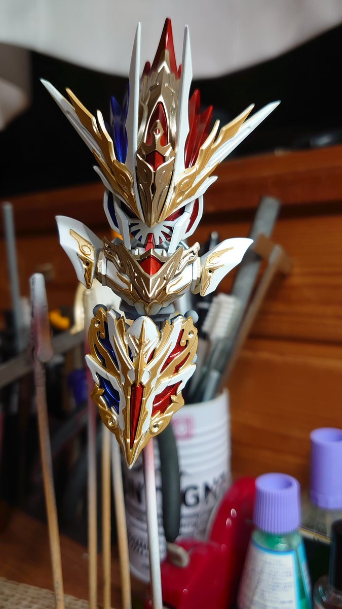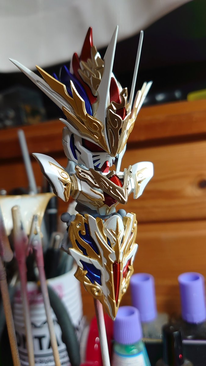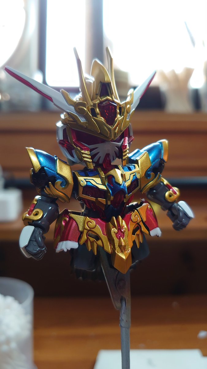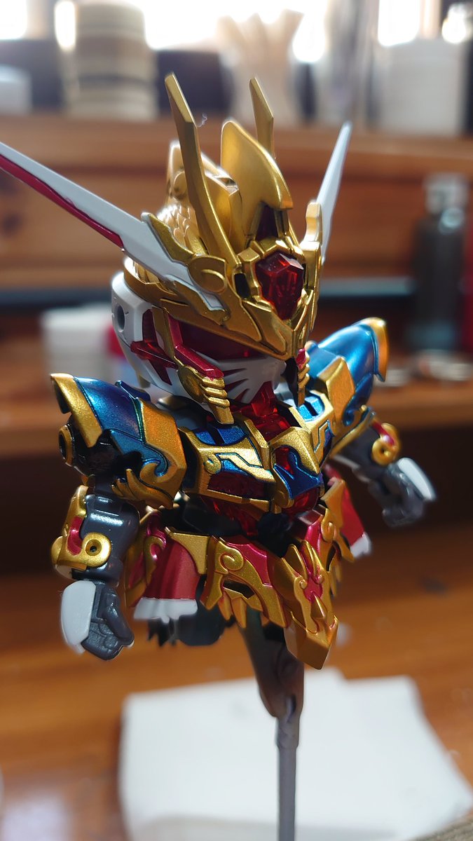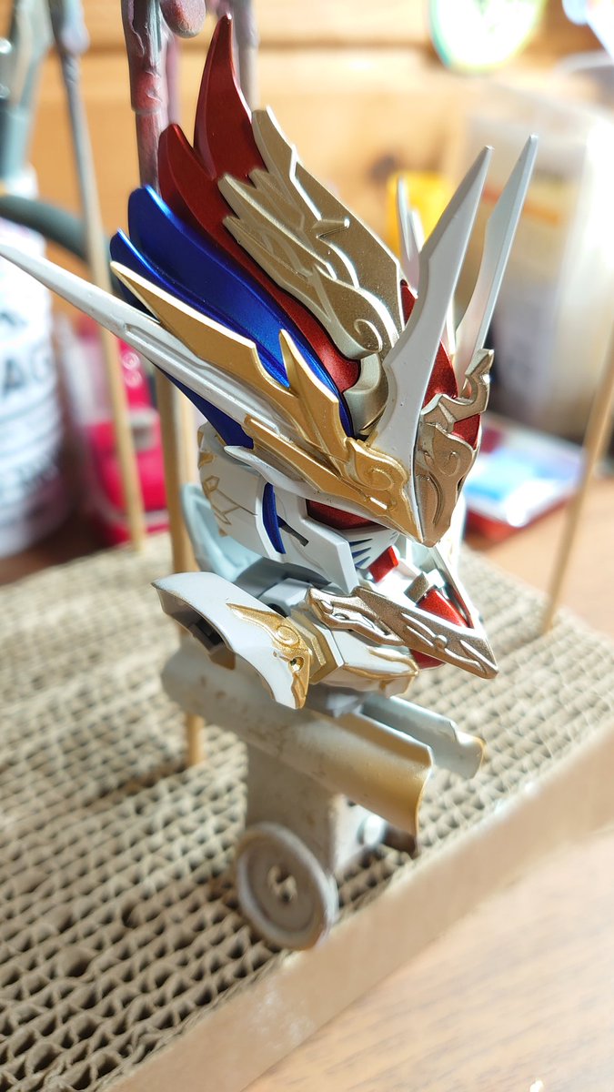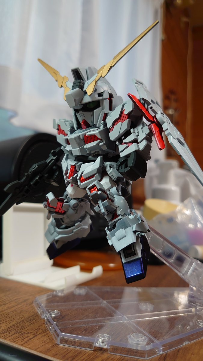 SDCSユンコーン。 ランナー塗装で黒サフ➡銀サフ➡白サフの順で適当に塗る。 ムラだらけで結果オーライ。 #ガンプラの画像を貼るとRTされると聞いて #ガンプラ好きと繋がりたい #SDガンダム