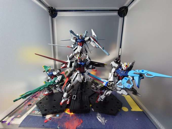 ストライクガンダムズ仮完成しました! 今回大量のマスキングとソードとランチャーのバックパックスクラッチしたので苦戦しました‥ 皆さんはどのストライクが好きですか? #ガンプラの画像貼るとRTされると聞いて #ガンプラ好きな人と繋がりたい #ガンプラはどんな自由な発想で作ってもいいんだ