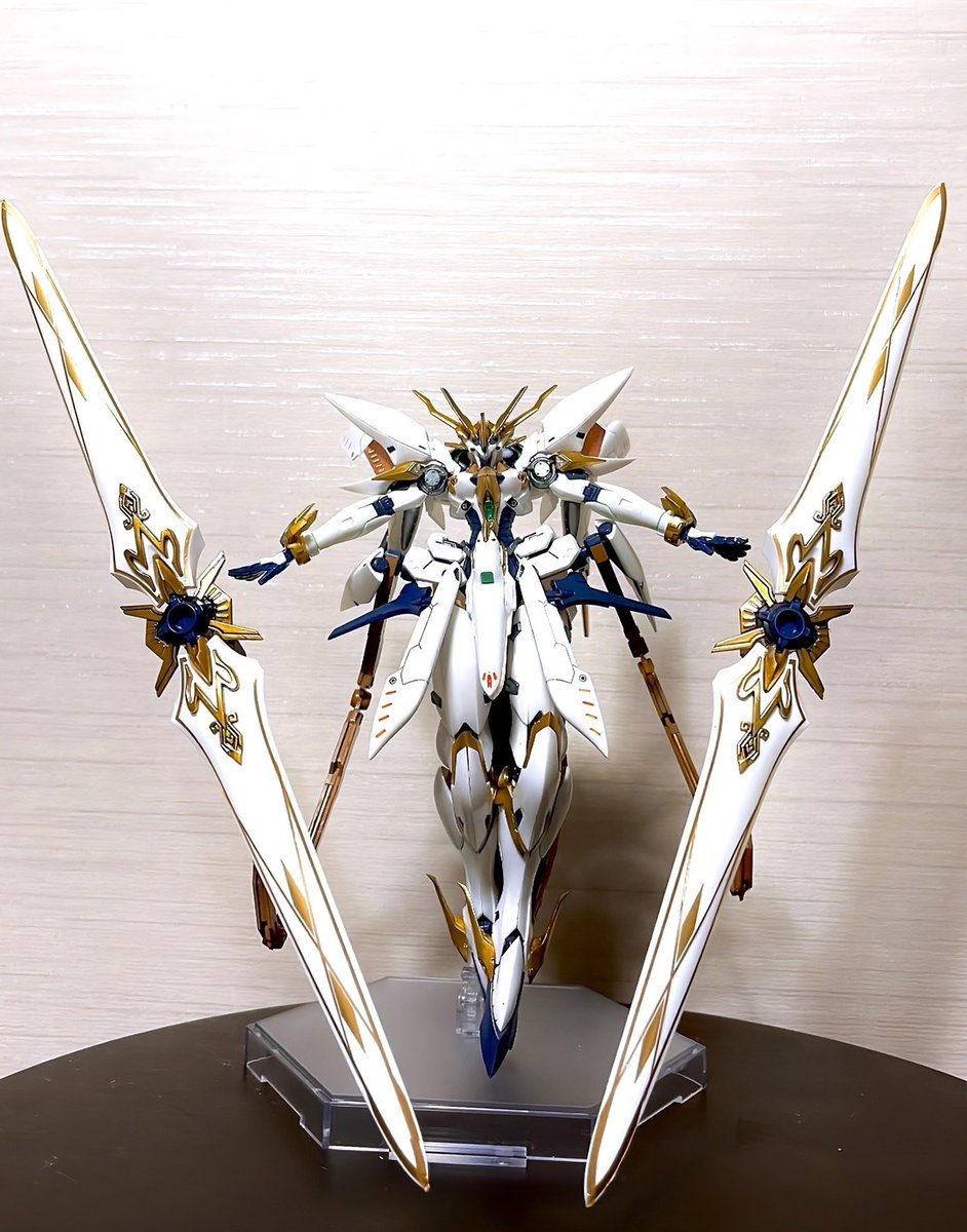 やっと完成しました! フレーム以外全身パール塗装してますビームサーベルはポロリするのでのけています笑 素晴らしいキットでした♪ #ガンプラの画像を貼るとRTされると聞いて #MGEXストフリ #ガンプラ好きと繋がりたい