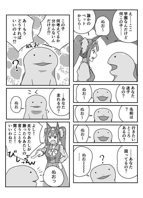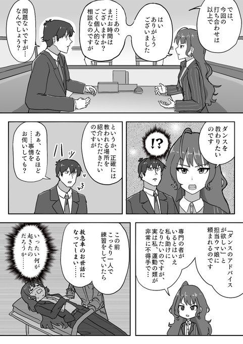 描きました! > 「白坂小梅のあの子」と「マンハッタンカフェ(ウマ娘)のお友達」がまったり会話しているような内容をお願いします。 #odaibako_CHF25 odaibako.net/detail/request…