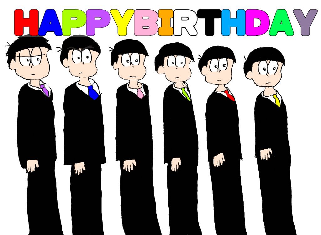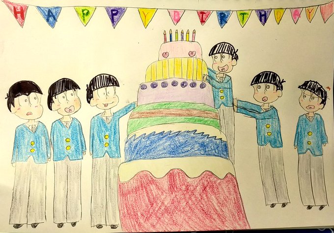 #松野家6つ子生誕祭お祝いイラスト 誕生日おめでとう!!(´。•◡•。)ノ🎉 大好きな6つ子のみんながこれからも元気でいてくれますように!! ❤💙💚💜💛💗 これからも、ずっ〜と大好き❣❣❣❣❣❣