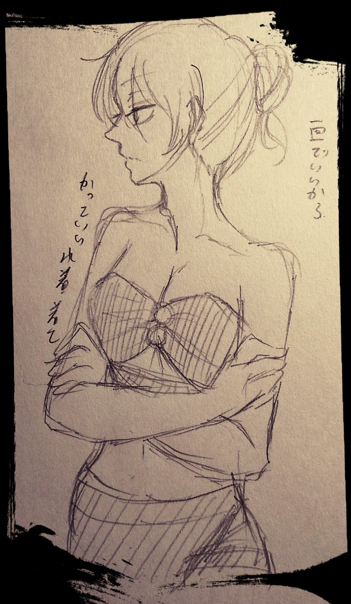 そういえば、バストアップだけで下どんなか決めてなかったなという落書き